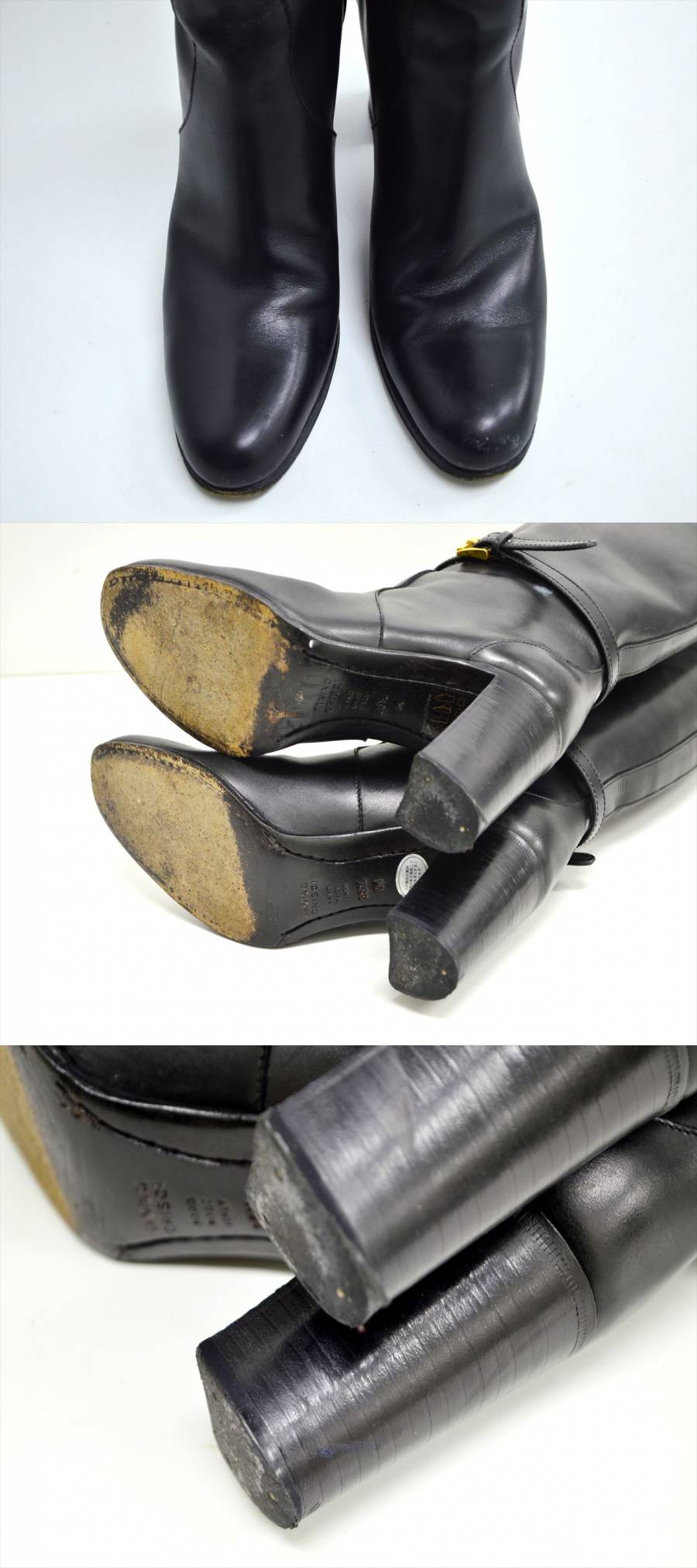 ■サイズ 表記:36 1/2 アウトソール:横(最大部)8cm ヒール高さ:8cm 履き口幅:17cm×2 高さ(履き口~ヒール底)47cm ※採寸の多少の誤差はご了承お願い致します。 ■付属品(画像の物が全てになります。) ・本体のみ ※外箱は付属しておりません。 ■状態 ※こちらの商品はその他の商品との同梱不可とさせて頂きます。 全体的にある程度のダメージ感の見受けられる中古品となります。 表地各所にレザー素材特有の擦れキズ・汚れ・履きシワ等が見受けれ、靴裏・インソールのほうにも使用に伴うダメージ感・ヒール先のヘリもございます。 ダメージ箇所の画像掲載は一部の目立った箇所となりますこと予めご了承お願い致します。 | ||||