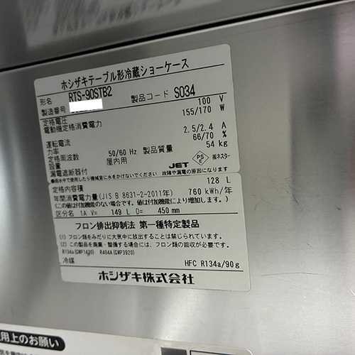 冷蔵ショーケース ホシザキ RTS-90STB2 業務用 中古/送料無料