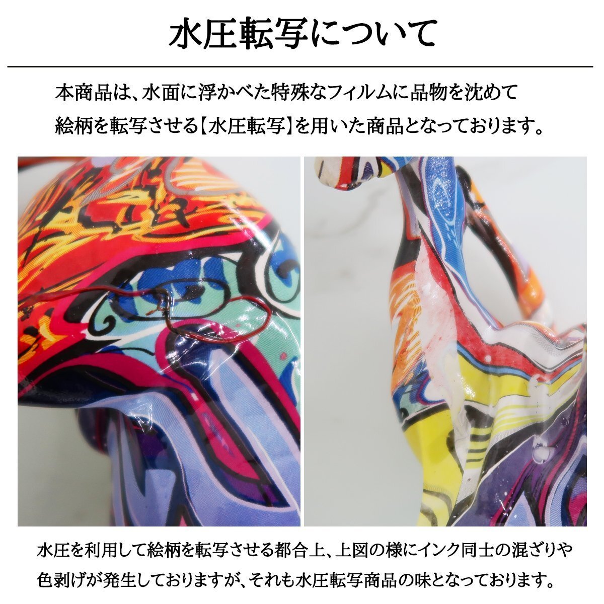 ポップな現代アートが描かれた特徴的な動物のオブジェです。