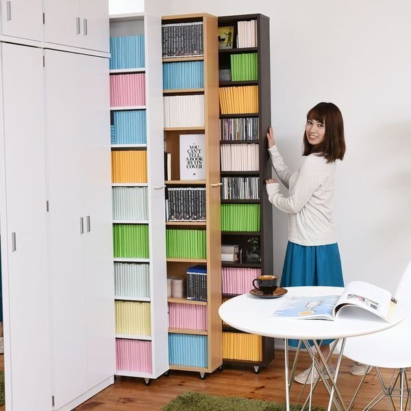 | 幅16.5cmの隙間を埋めてスッキリ収納。 たくさん増えて置き場に悩む、本やメディア類もこれ一台にまとめることができます。 棚板は11枚付いているので、12段の棚を作ることができ、収納の自由度が高い隙間ラックです。 |