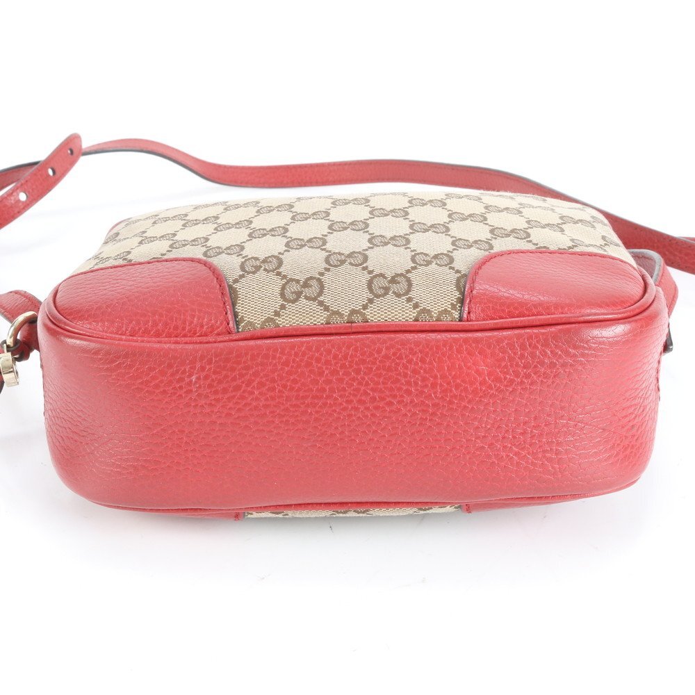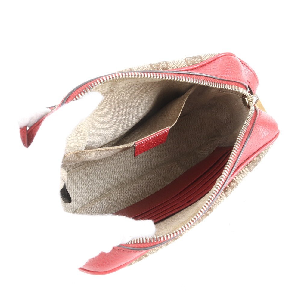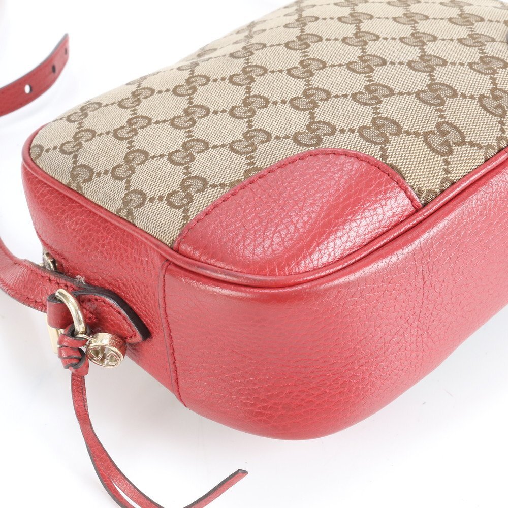 1円■極美品■グッチ■GGキャンバス 449413 レザー ショルダーバッグ 斜め掛け ブラウン レッド 本革 レディース ERM CY7-8
