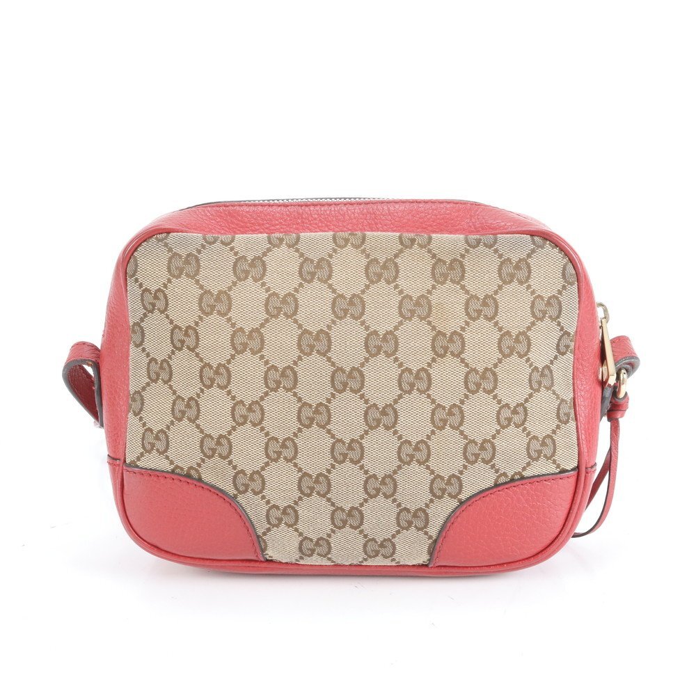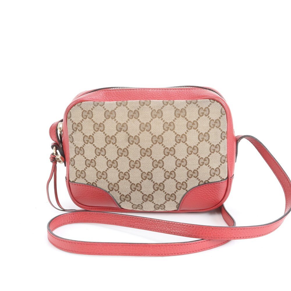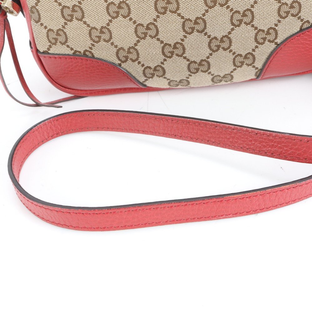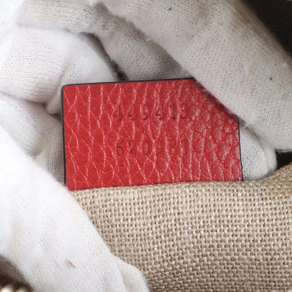 1円■極美品■グッチ■GGキャンバス 449413 レザー ショルダーバッグ 斜め掛け ブラウン レッド 本革 レディース ERM CY7-8