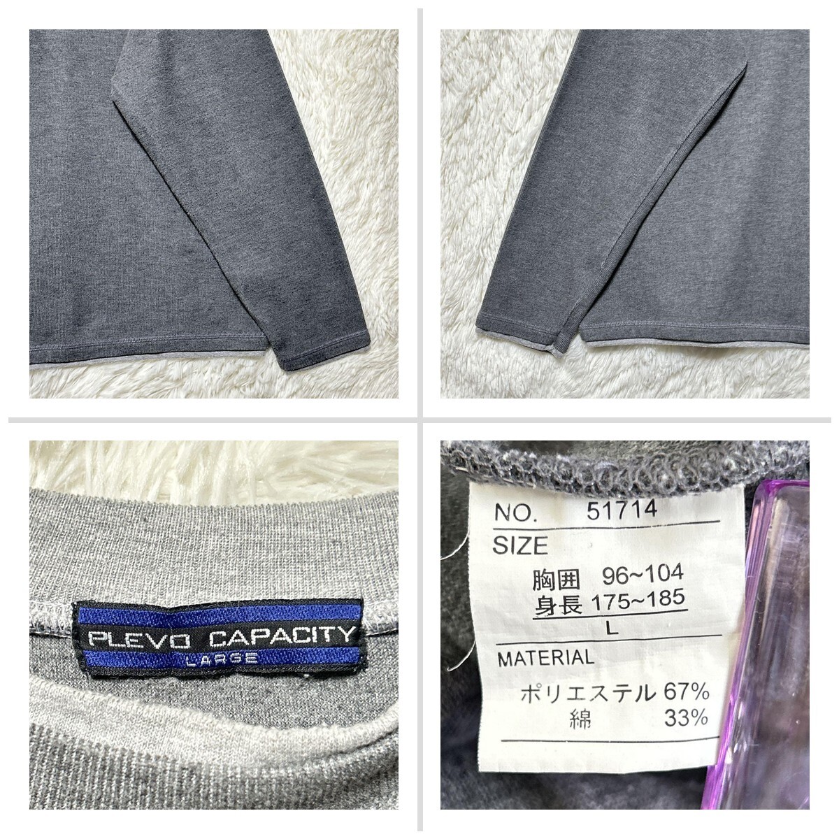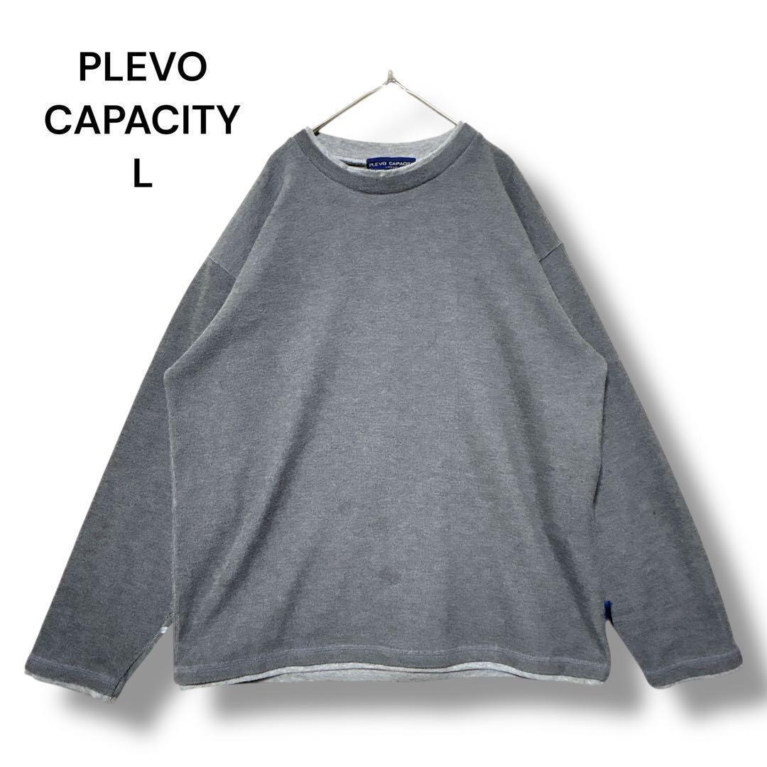 プレボキャパシティ ニット 長袖 グレー L 無地 クルーネック ストレッチ 70EF7F