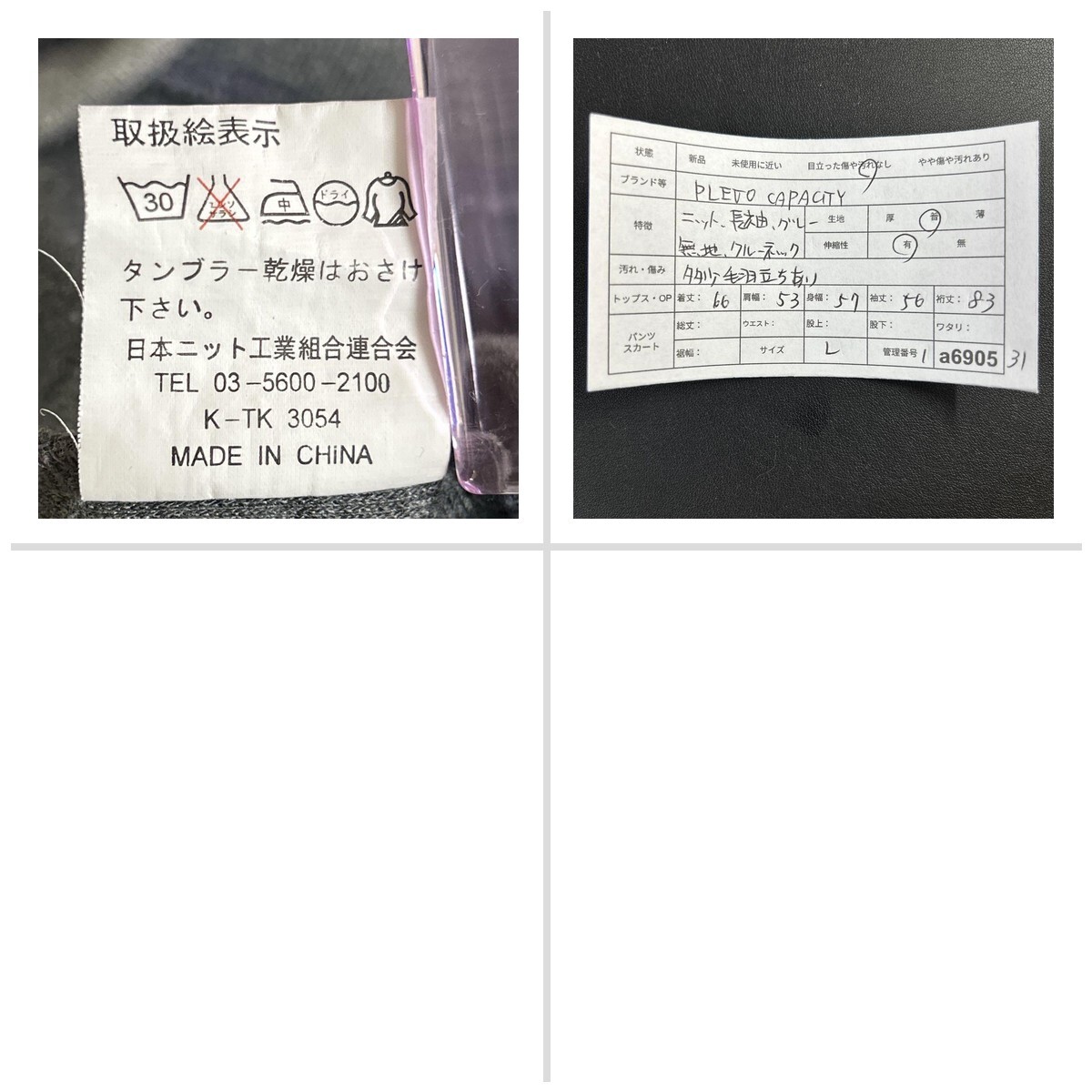 サイズ/タグ表記  L