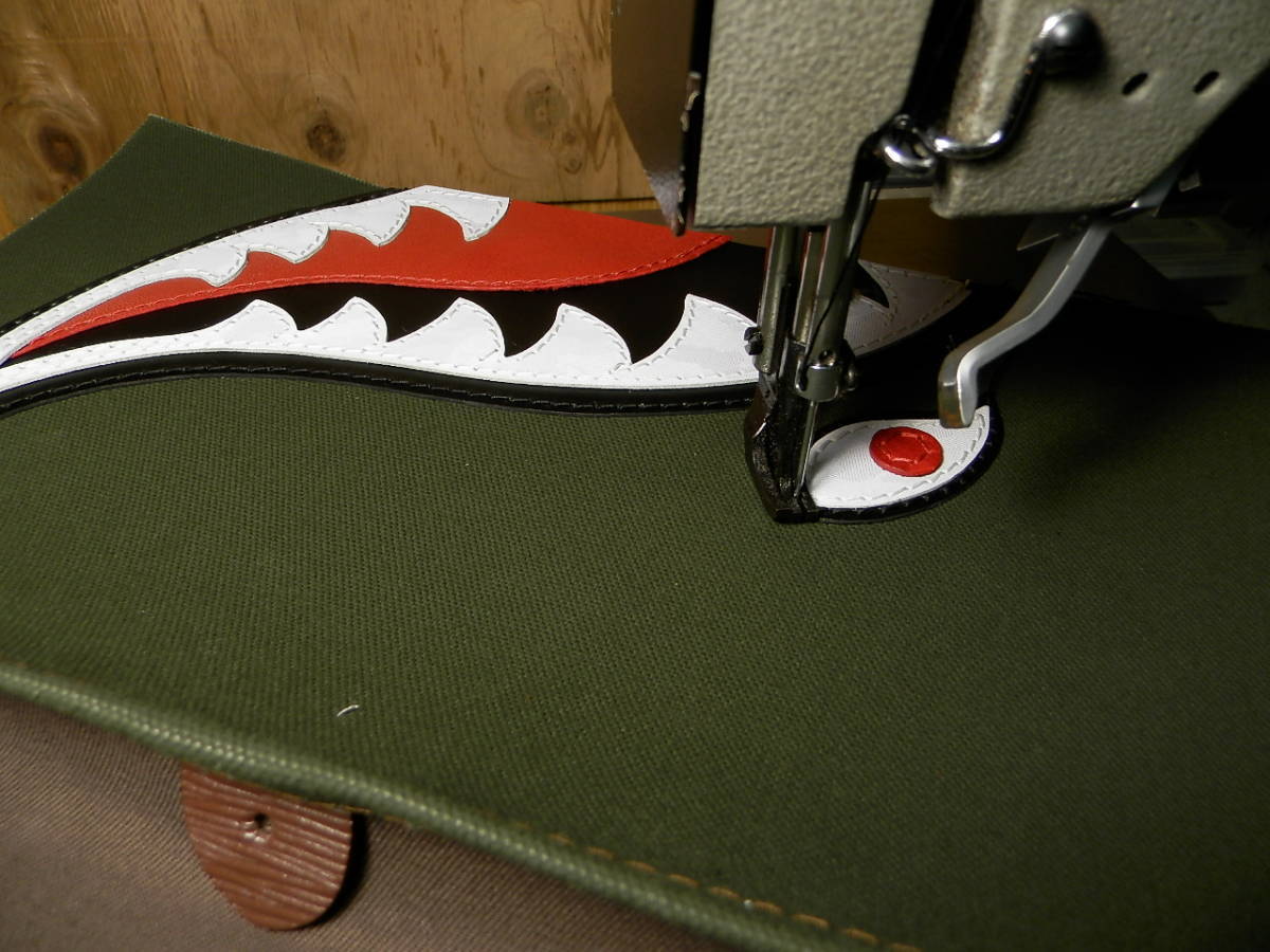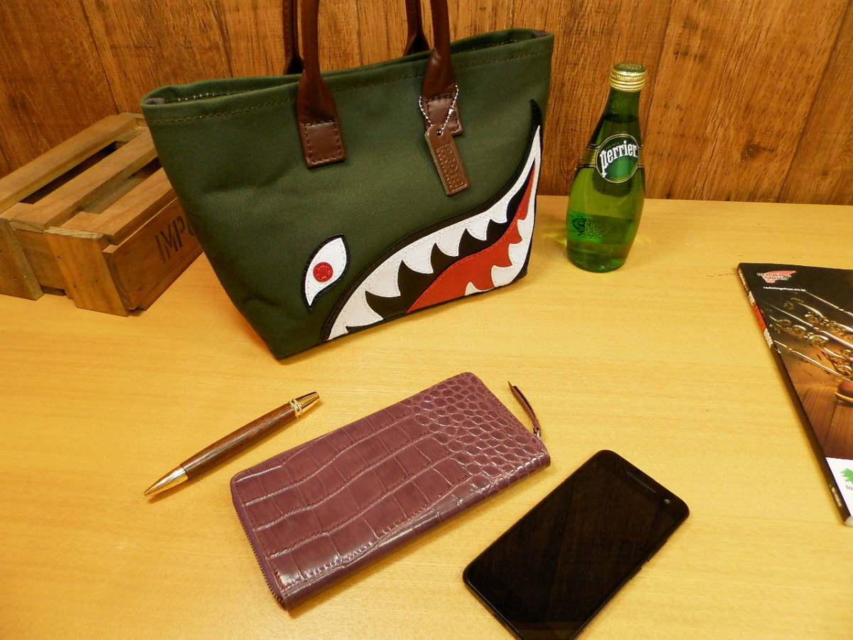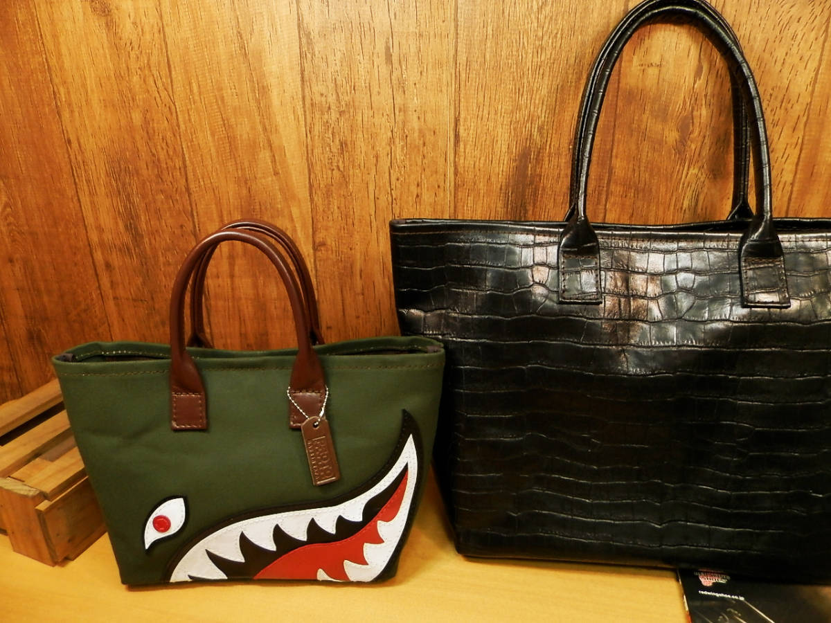 受注生産 可愛い☆厚手6号オリーブ防水帆布×本革シャークマウスのミニトートバッグ日本製ミリタリーSサイズ/シャークトゥース/アメリカ軍