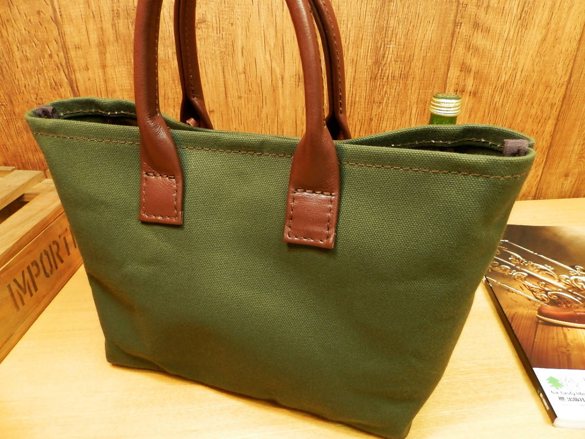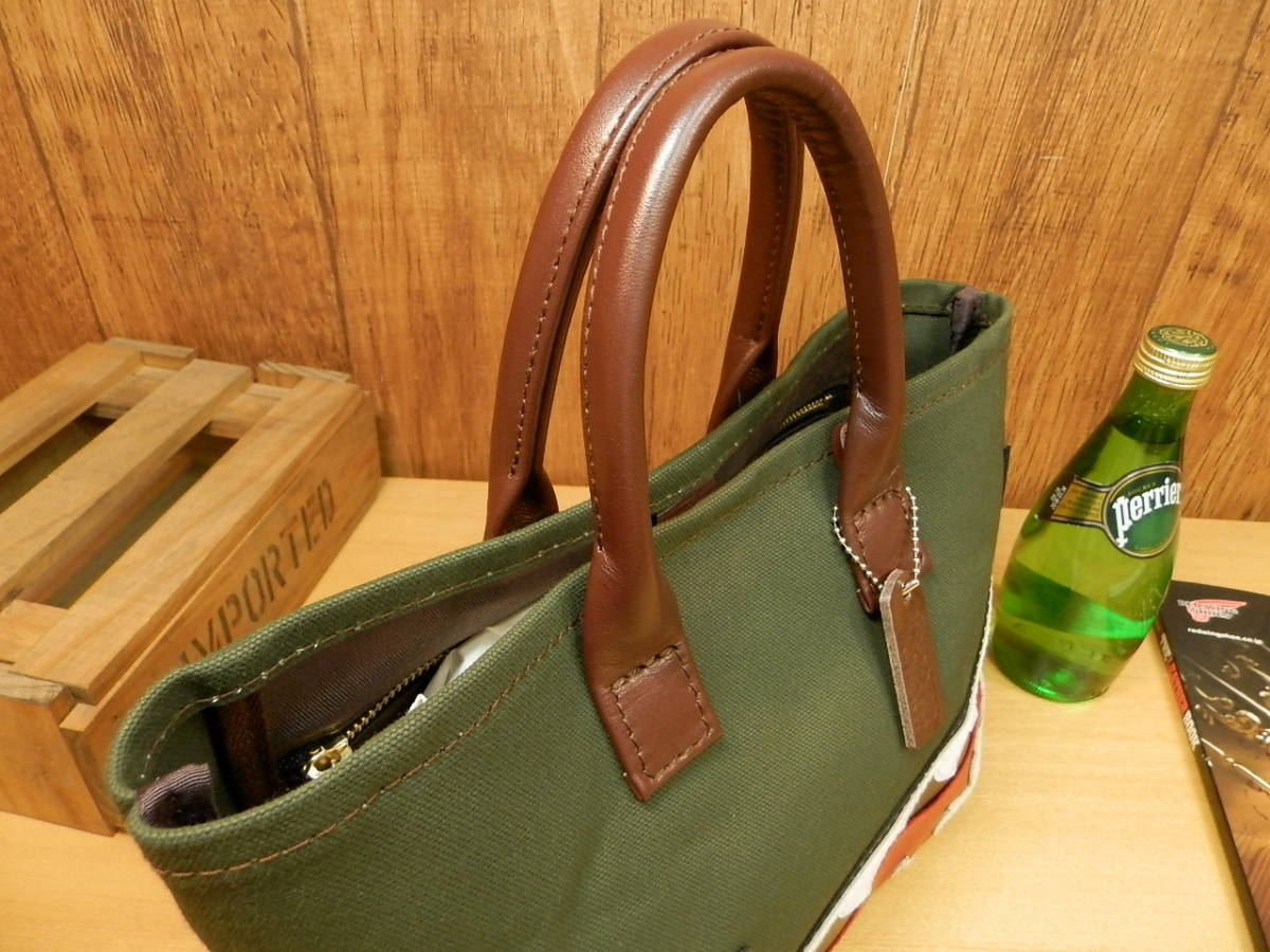 オリーブ号帆布のSサイズ ミニトートバッグを製作しました。