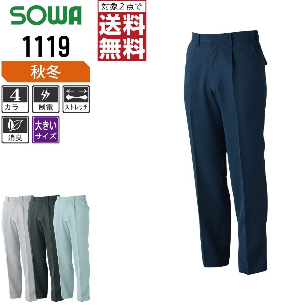 SOWA 秋冬 制電 ストレッチ ワンタック スラックス 1119 作業ズボン 色:ネイビー サイズ:95 ★ 対象2点 送料無料 ★