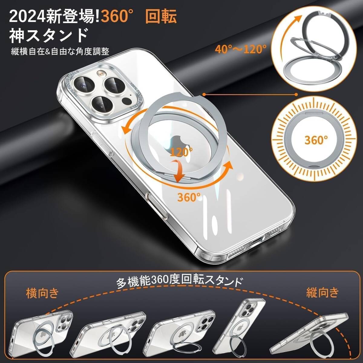 【多機能360度!縦も横も思いのまま!】:背面に搭載された嵌め込み式リングは、安定したアルミ合金製の円形スタンドを採用しており、従来のリングと比較して滑りにくく、安定したグリップを提供します。360°回転スタンド機能により、縦置き・横置きどちらの状態でも安定して利用でき、0°~ 120°の間で多角度自由に調整できます。動画視聴やFaceTimeを利用する際には、両手を解放し。外出先でも手軽に使用でき、リングやスタンドを持ち歩く必要がない。