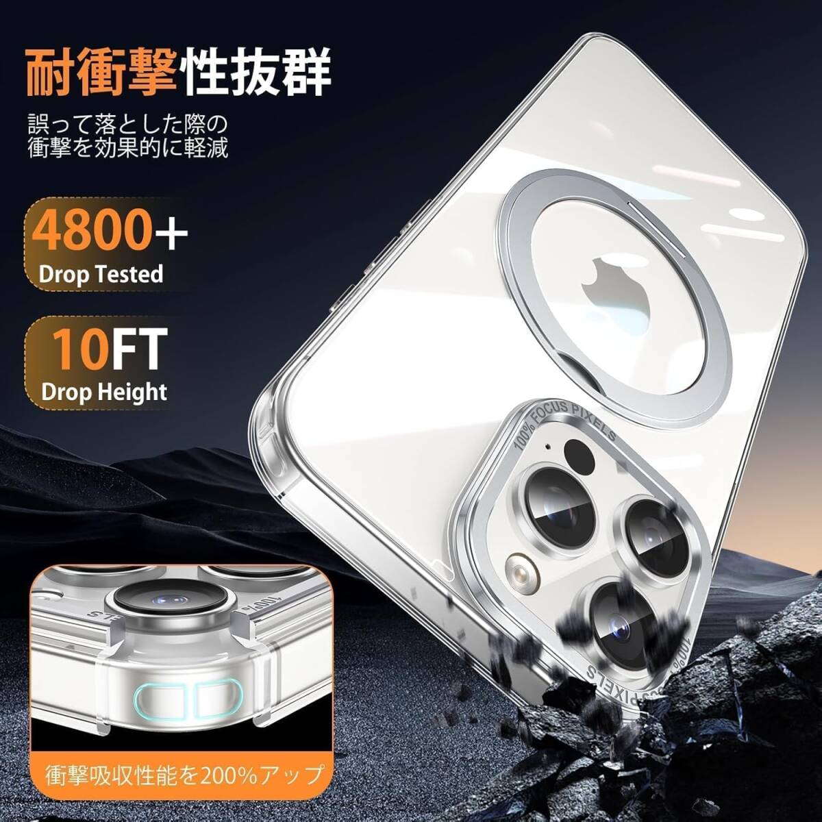 【MagSafe対応・磁力アップグレード】:強力なN52磁石を搭載しており、磁石吸着力は従来より10倍高め、ケースを装着したまま高速ワイヤレス充電が可能です、充電時の熱を周囲に発散して。Magsafe充電がかつてないほど簡単にできます!強い磁力により車運転中の激しい振動でもMagsafe車載ホルダーから外れることなく、市販のあらゆるMagsafeアクセサリーに簡単対応!いくら振っても落ちないので、充電しながらゲームをやっても問題なし!