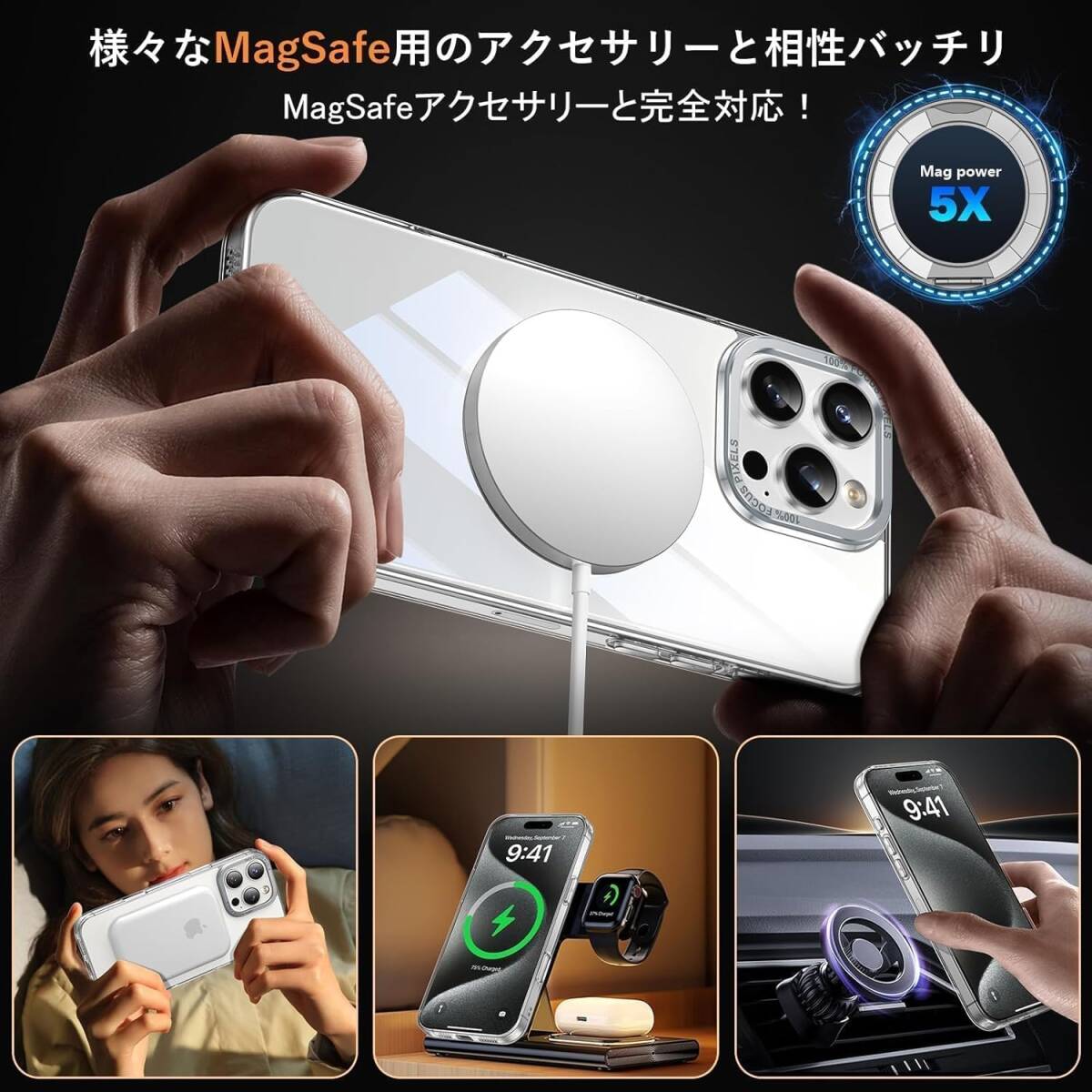 【対応機種】本製品はiPhone 16 Pro Max(三眼カメラ、6.9インチ )専用に設計されています、他のモデルには対応しておりません。ご購入の際は対応機種を十分にご確認ください。ワイヤレス充電やモバイルバッテリーなど全てのMagSafe用アクセサリーにもばっちり対応しています。