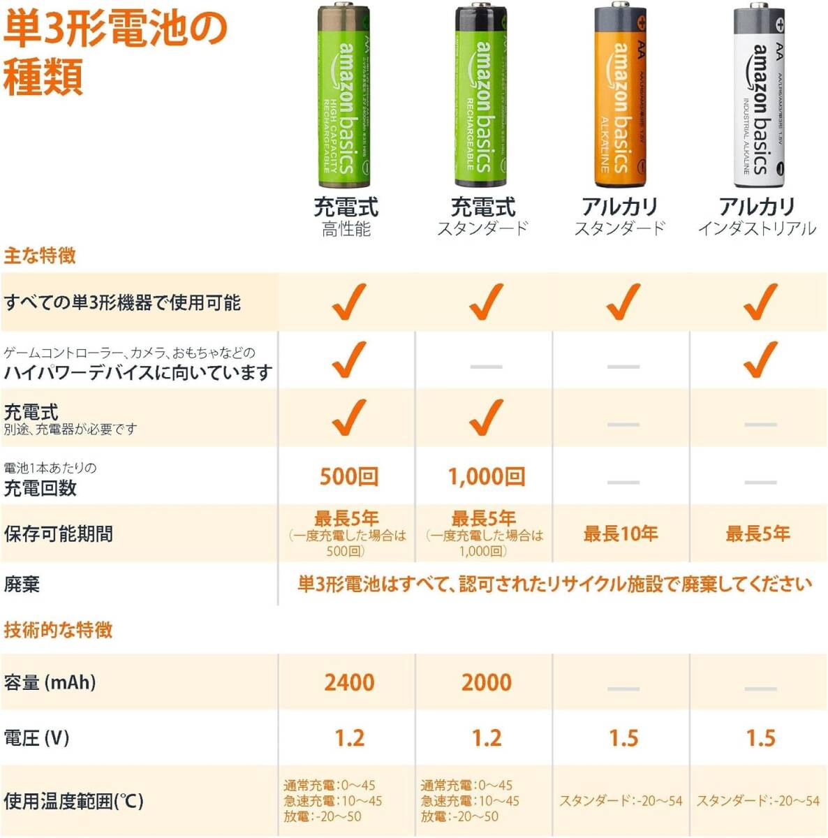 Amazonベーシック 充電池 充電式ニッケル水素電池 単3形