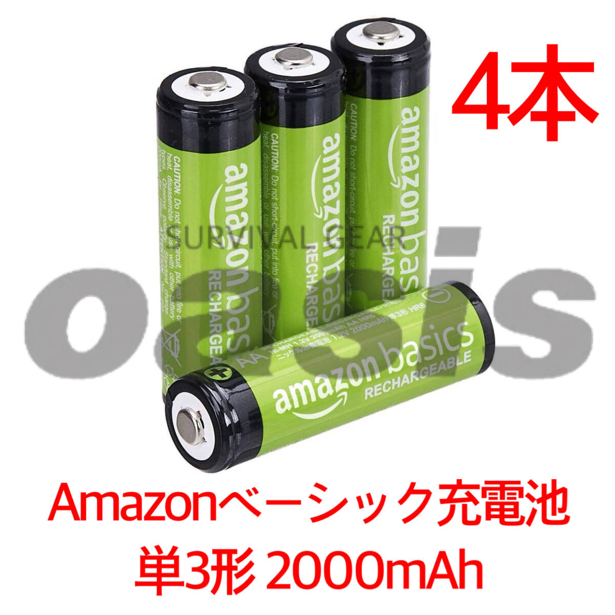 Amazonベーシック 単3形4本入 最小2000mAh 約1000回使用可能 充電池 充電式ニッケル水素電池 エネループ パナソニック