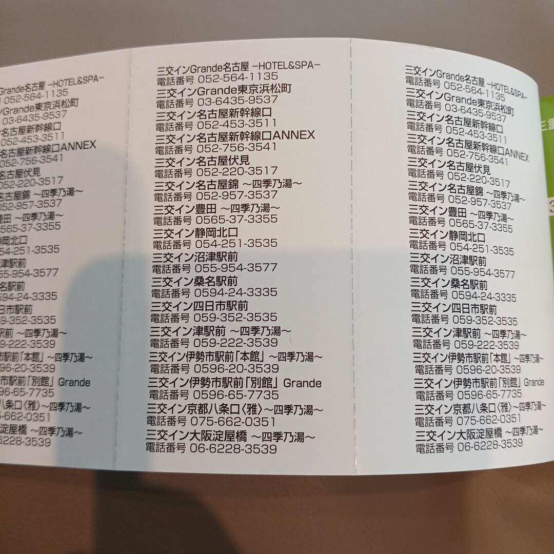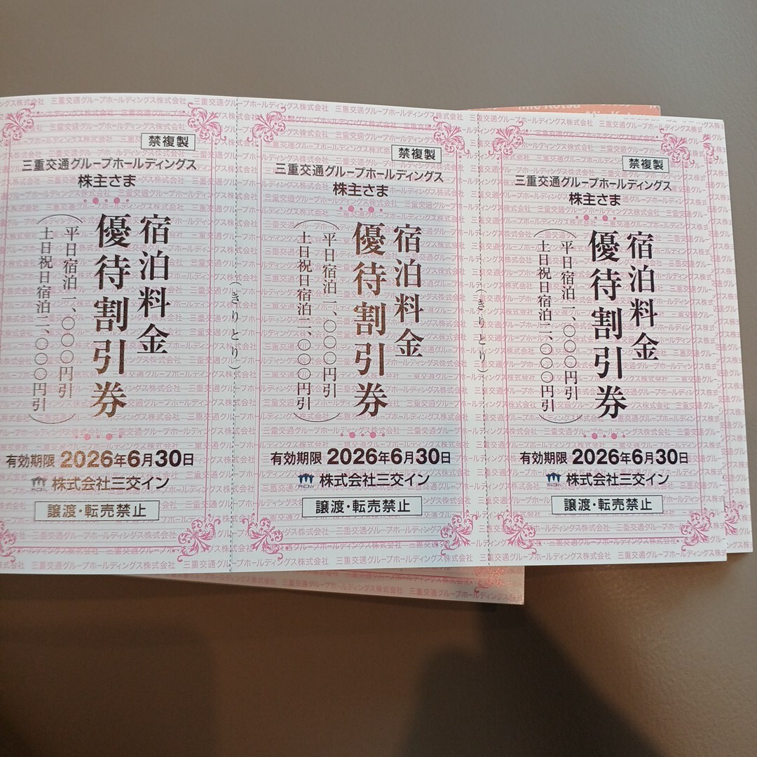 三交イン宿泊料金 優待割引券 3枚