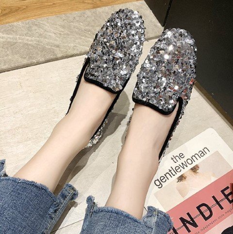 ・足元が華やかになるスパンコールシューズ。