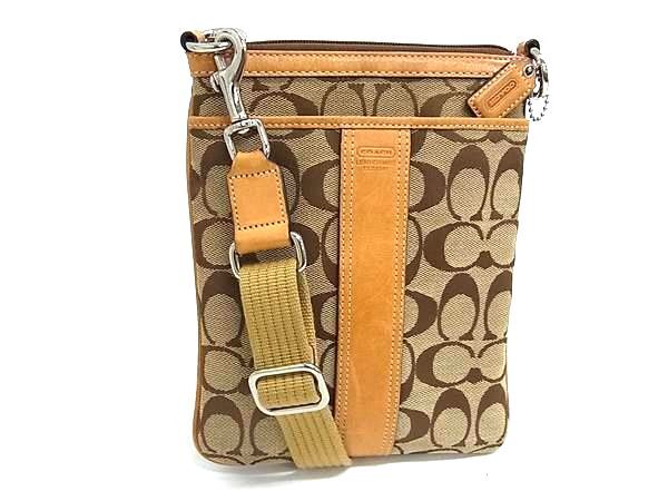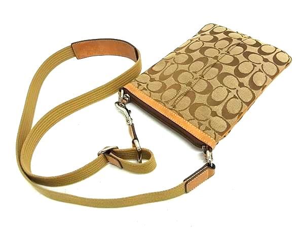 1円 COACH コーチ 6016 シグネチャー キャンバス×レザー クロスボディ ショルダーバッグ ポシェット 斜め掛け ブラウン系 GD0149