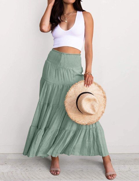 ・ふんわりとしたシルエットで動くたび軽やかに揺れるティアードデザイン。ボディラインを拾わずおなか周りや下半身をカバーしてくれます。