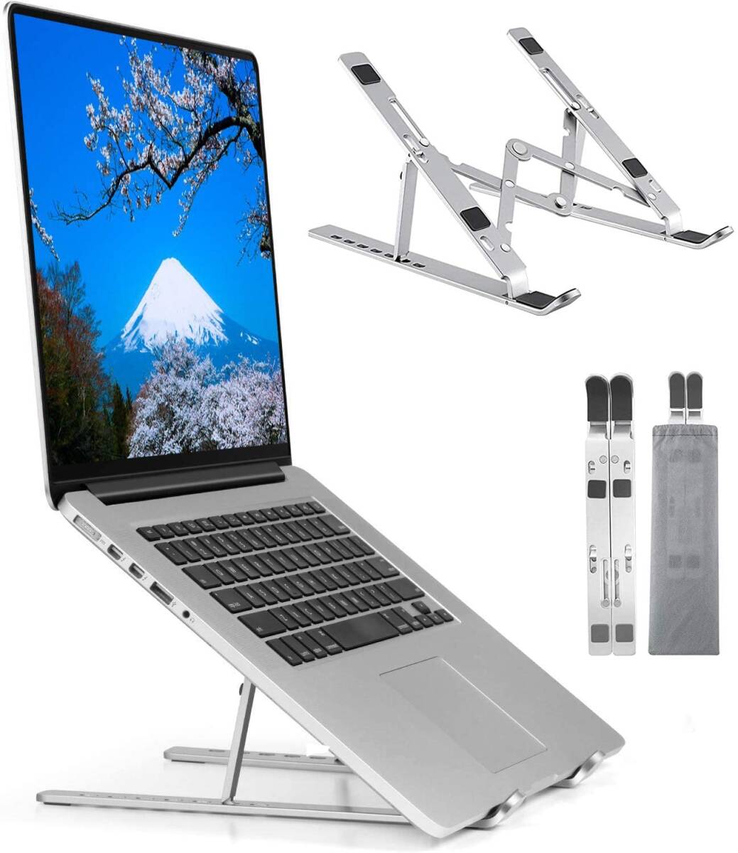 折りたたみ式スタンドは軽くて収納簡単で、いつでもどこでも携帯できる。折りたためたサイズは25cm*4.5cmで、重さは約260gです商品は収納バッグも付いていますので、スーツケース、リュック、ハンドバックで収納できます、ノートパソコンを外出先で使うことにも便利です。また、表はアルミニウムで、触れると金属素材ならではの冷たさを感じられて、手触りはスムーズで高級感があります。