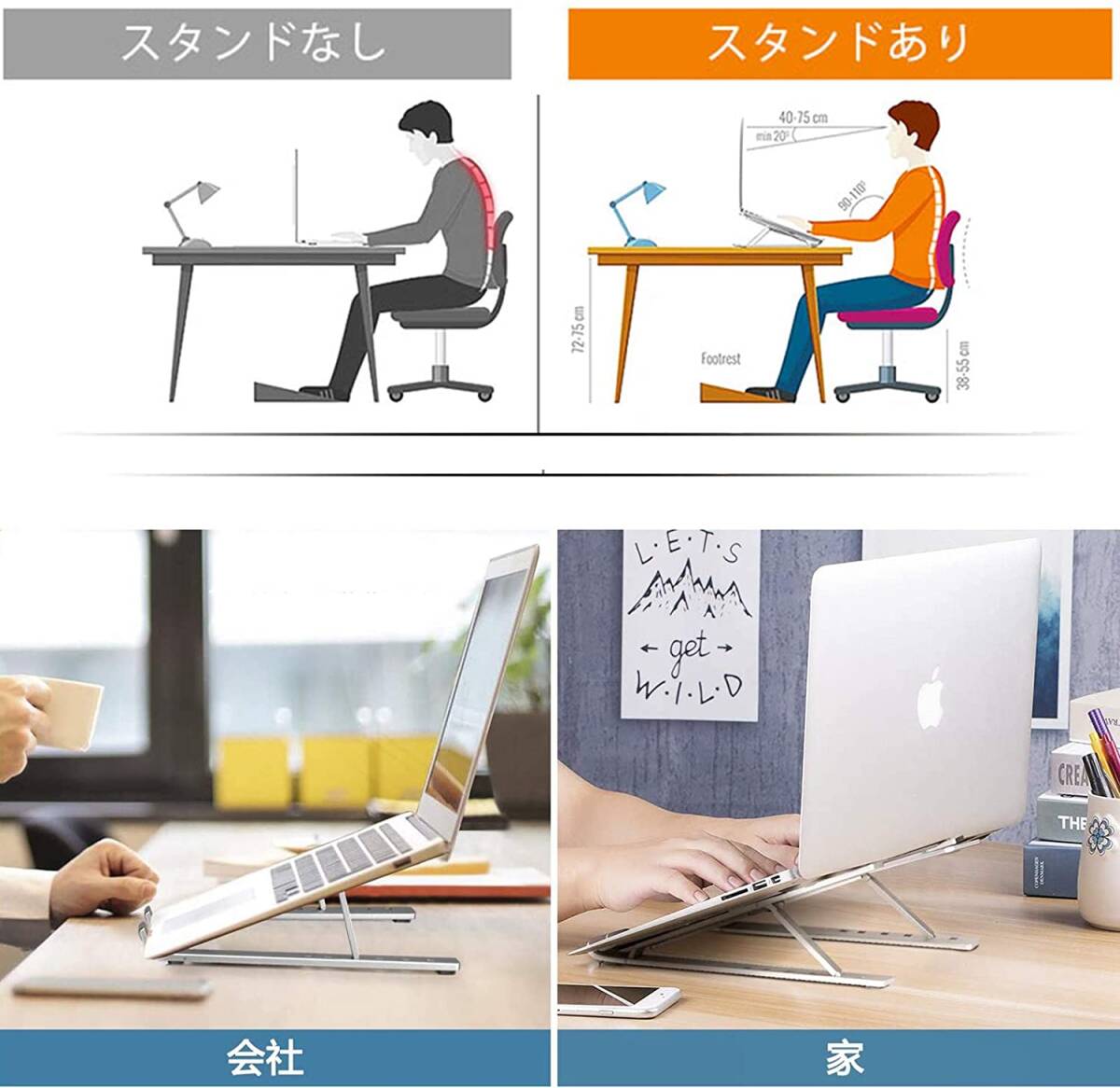 パソコンの高さを調節でき、正しい姿勢について、高さを調整し、目線を高め、長時間の仕事中の頭や肩の軽減してくれます。