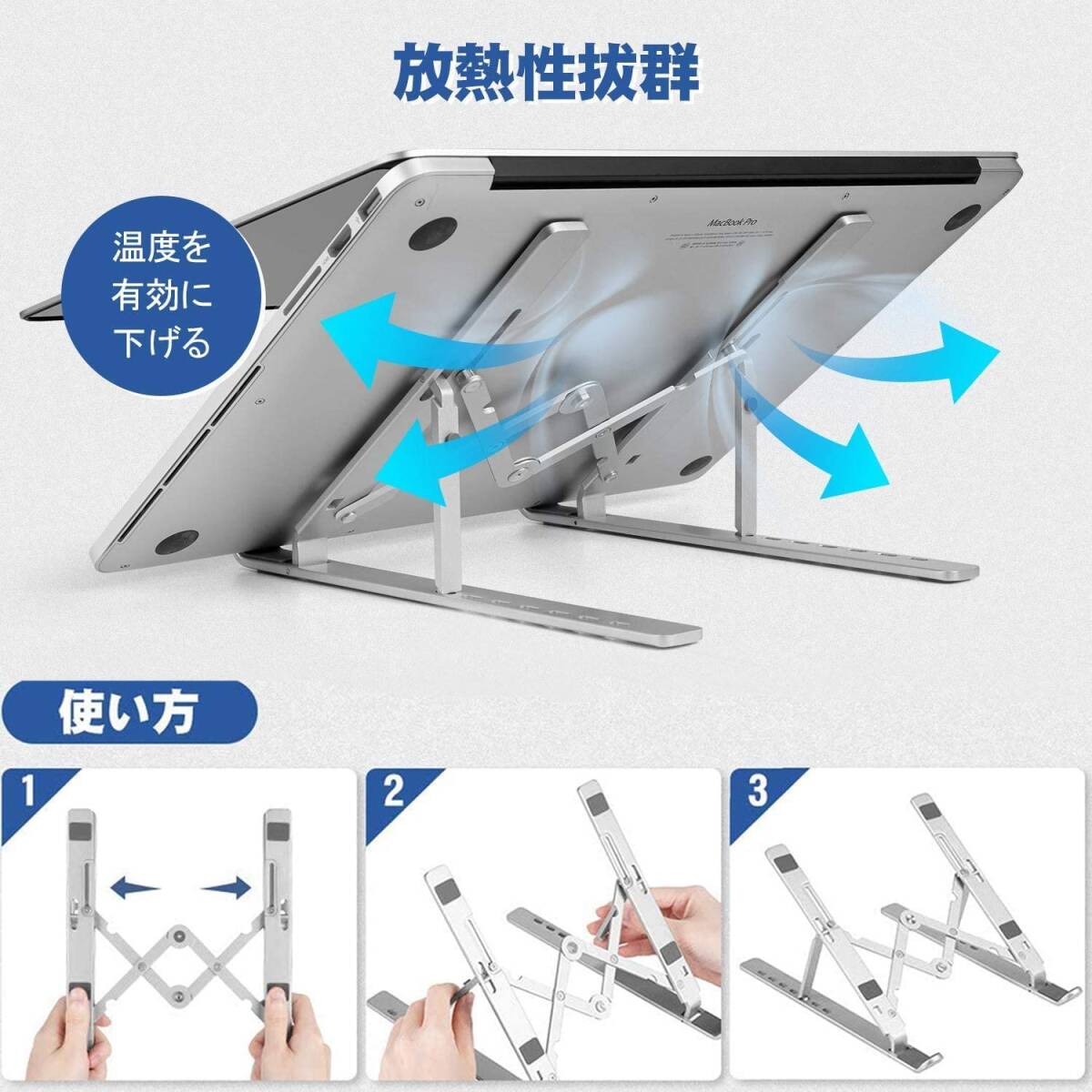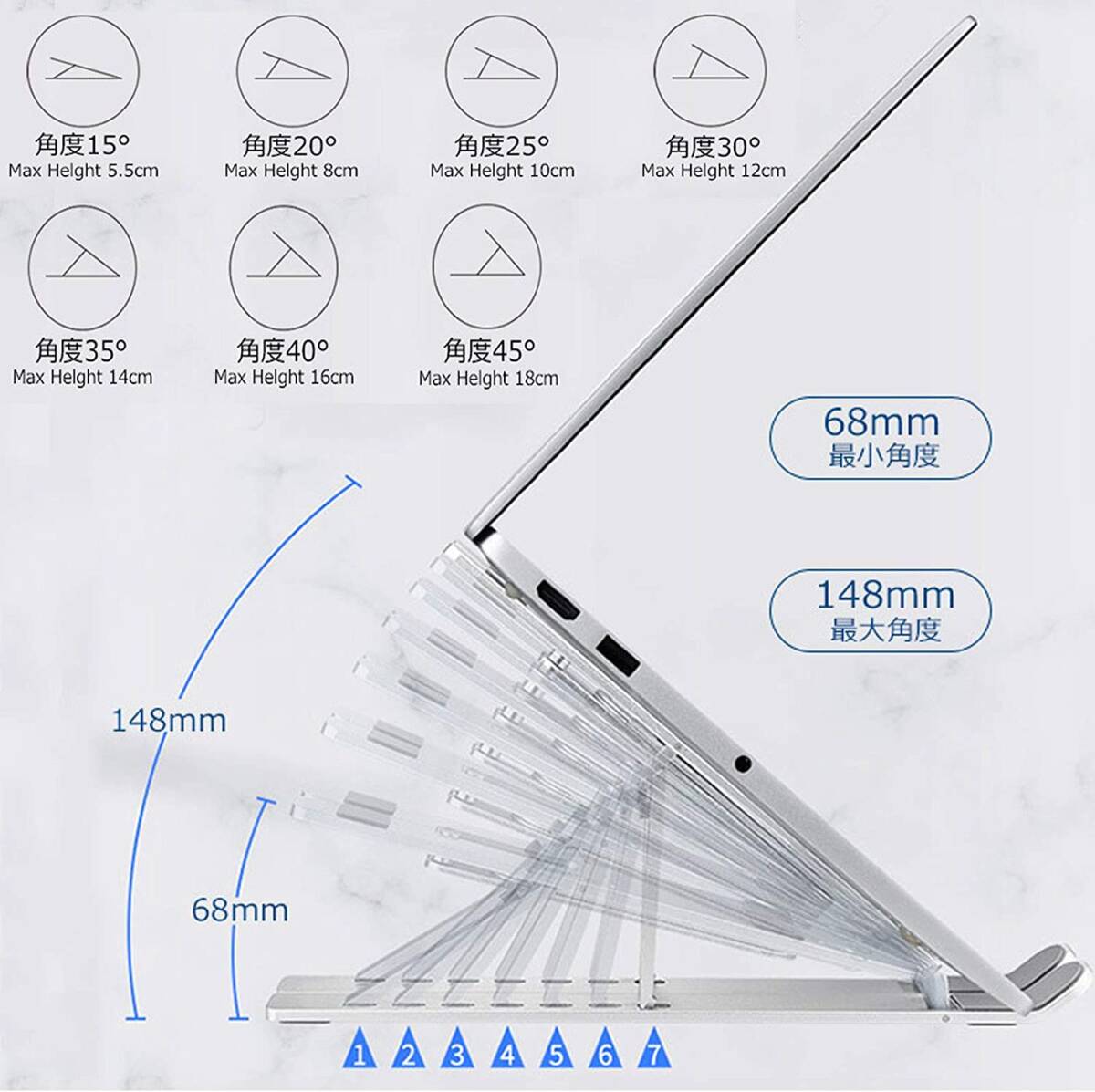 滑り止めシリコンパットはスタンドの上面や裏面に付いているので、PCを全面的な保護できるではなく、デスクなどの接触する面も保護できます。アルミニウム合金製三角形デザインのため、安定性が高い。耐荷重は35KGで、様々なパソコンの重量を耐えられます。