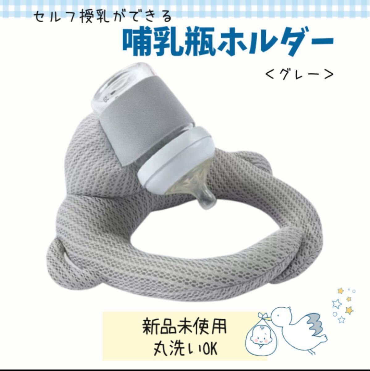 \夫が寝たあとにで紹介/哺乳瓶ホルダー ハンズフリー 洗濯OK&サイズ調整可能 自分で持てる セルフミルク 授乳 (グレー 小)