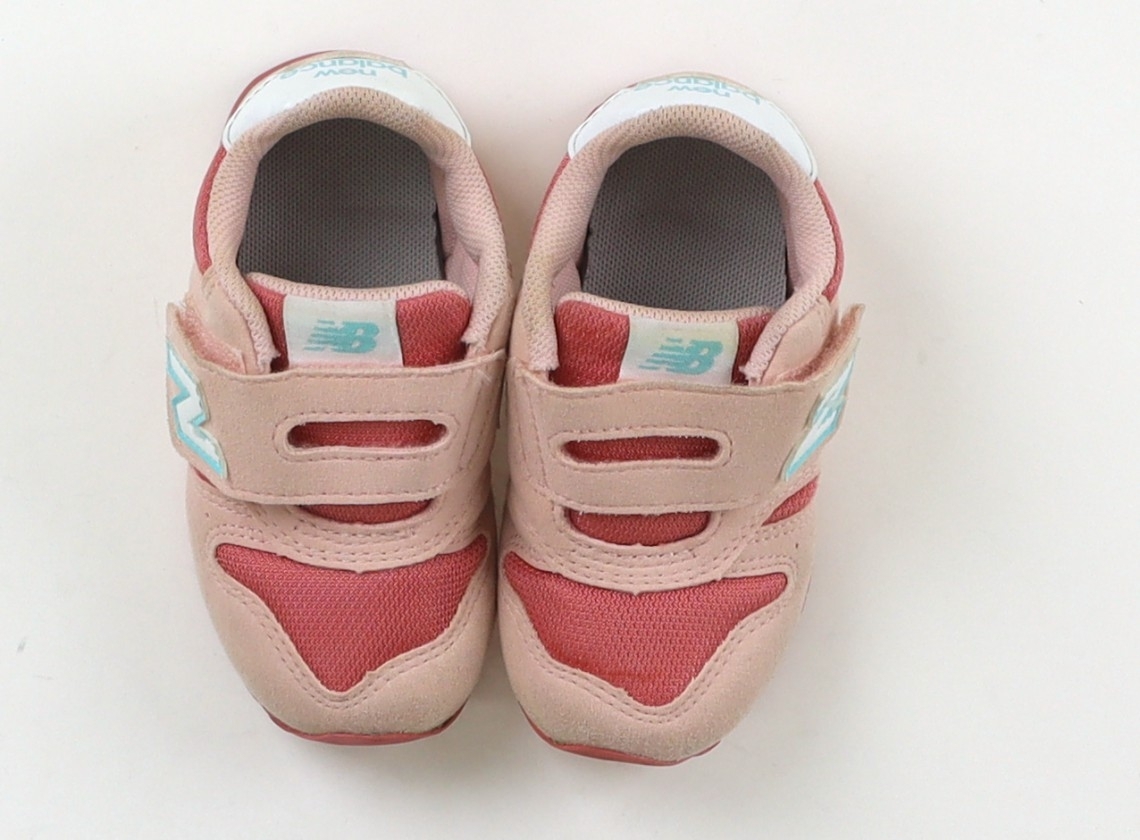 実際のサイズ表記は14cm。ベロに記名シールがあります。履き口は黄ばんでおります。靴底に土汚れの跡があります。全体的に使用感がありますが、特に目立つ汚れはなくまだお使い頂けそうです。
