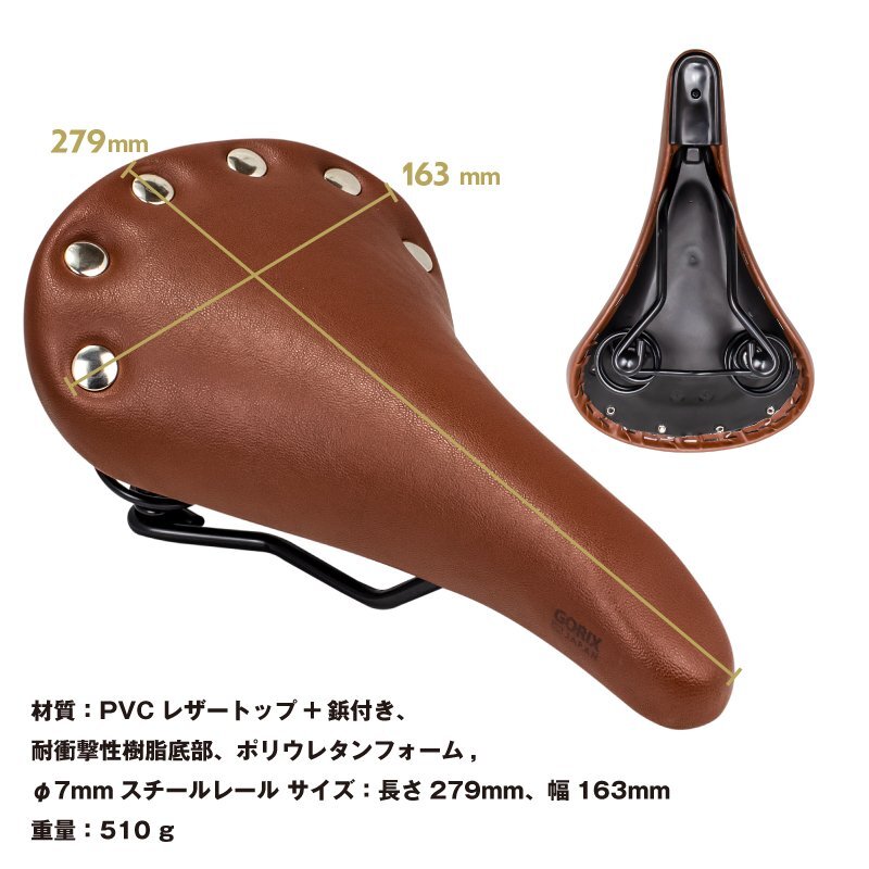 カスタマイズ性高いクラシック感漂うブラウンベースの自転車サドル。 | |