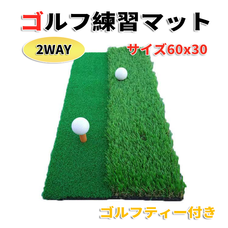 ゴルフ練習マット 30cm×60cm 室内 素振り 人工芝2種 ラフ ティー付き xh863