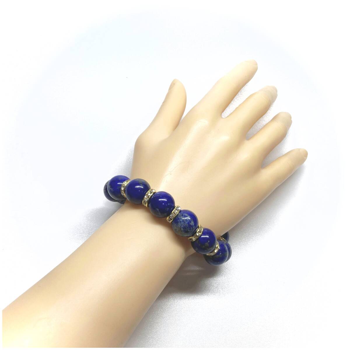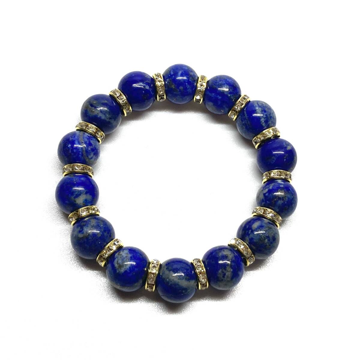 こちらは、14mm玉のラピスラズリを使用した天然石ブレスレットです。石との間にはロンデルを挟み高級感を演出しています。シンプルなデザインですのでどんなコーディネートとも合わせ易いブレスレットです。石大きさは14mm玉です。内周約17cmです。パワーストーンを付けてる方へのプレゼントにもお勧めです。14mmサイズのリクエストが多々ありましたので少量ですが販売しました。気になる方はお早めにどうぞ。