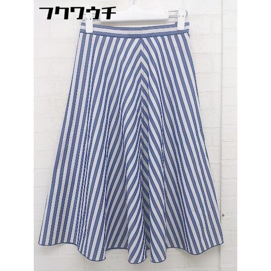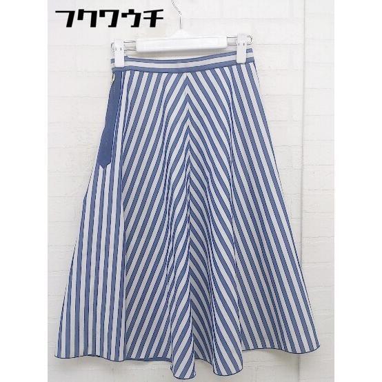 ◇ ROPE' ロペ ストライプ 膝下丈 フレア スカート サイズ34 ブルー系 レディース