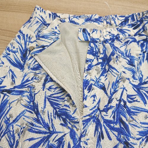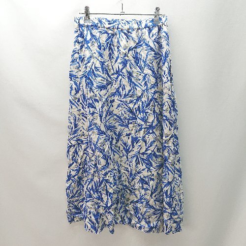 ◇ mink chair ボタニカル 総柄 夏 サイドジップ ウエストゴム ロング丈 フレア スカート サイズ02 ブル- レディース E