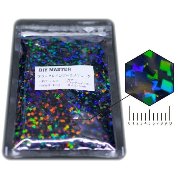 | ◆DIY MASTER ブラックレインボー ラメ フレーク スクウェア 3mm 100g◆ | |||||||||