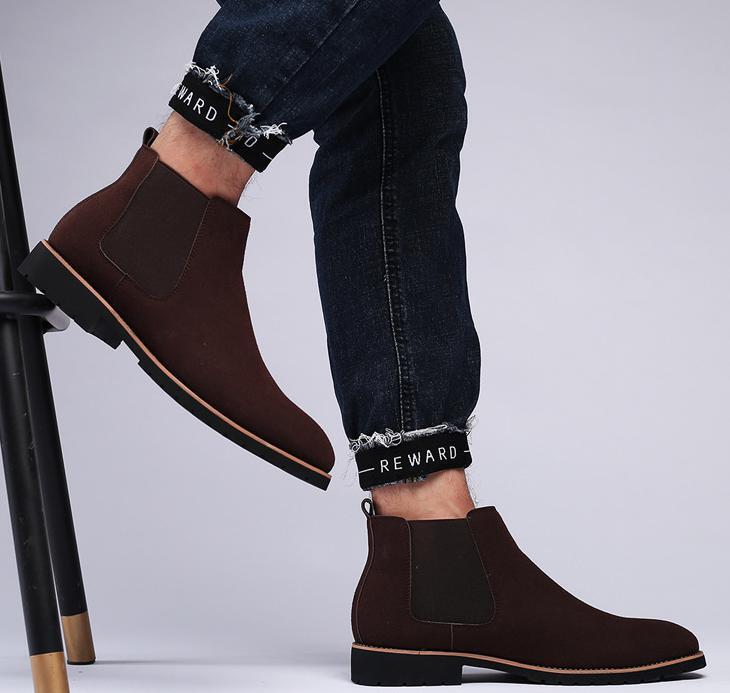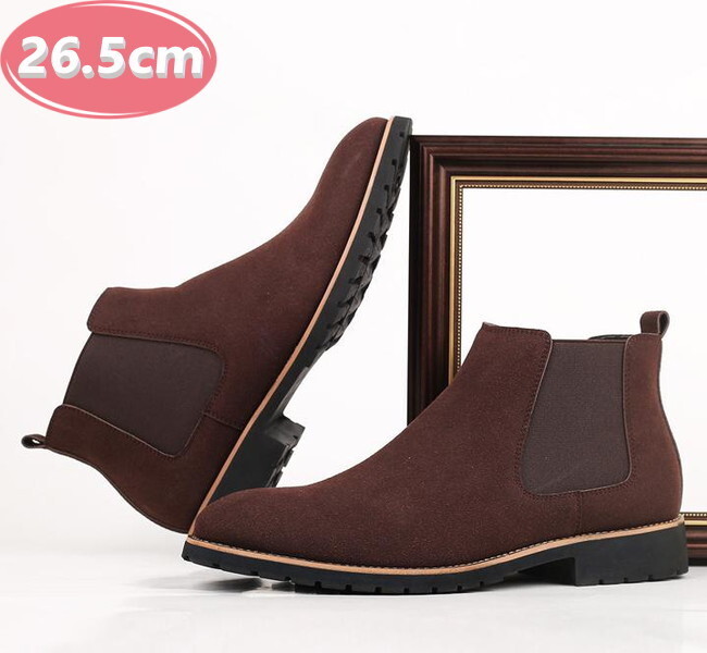 サイドゴア メンズ ビジネス PUレザー シューズ ダークブラウン 26.5㎝ 革靴 靴 カジュアル 屈曲性 通勤 軽量 インポート品【n155】