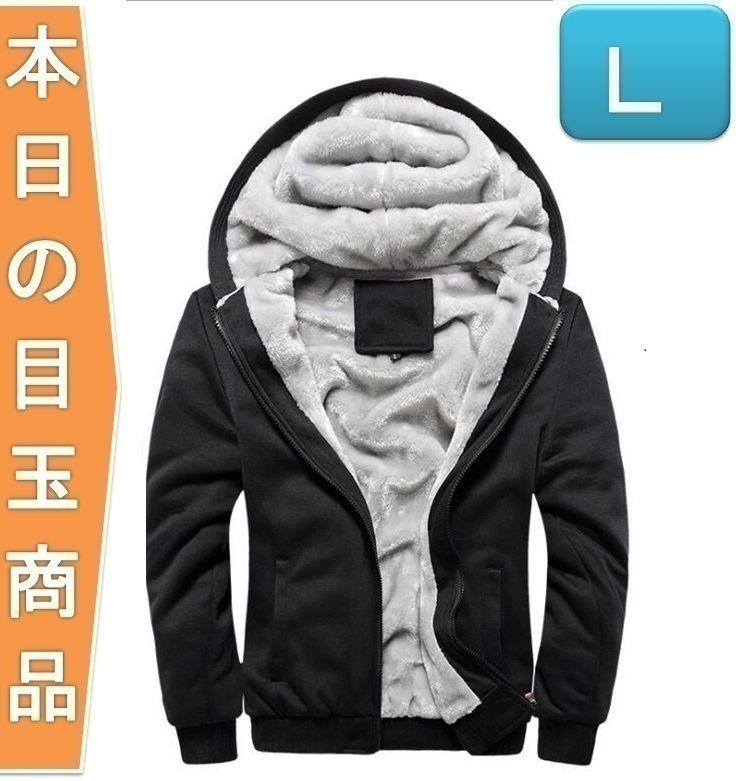 ☆1スタ 【173】 ボアスウェットパーカー ブラック L 裏起毛 ジップアップ パーカー ボア スウェットパーカー フード付き