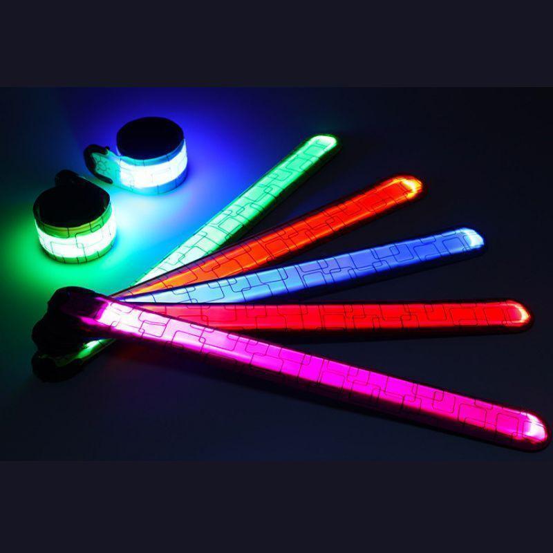 高視認性: LEDライトは従来の反射バンドよりも明るく、夜間の活動時に車や自転車、歩行者に対して高い視認性を提供。