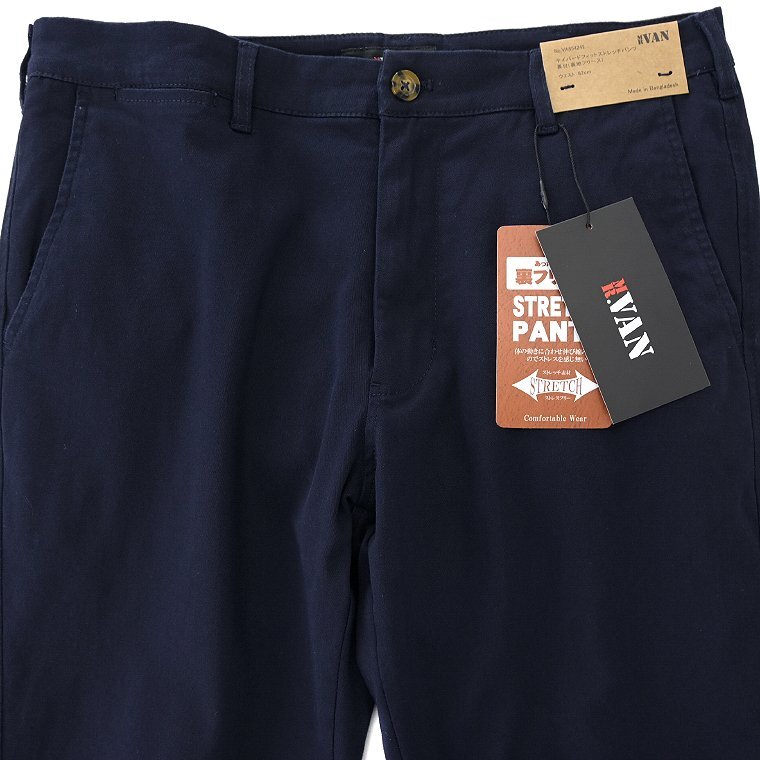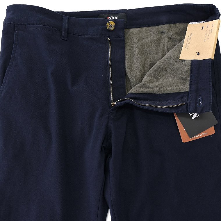 ウエスト82 ※商品に記載されたサイズ・寸法です※ ウエスト82cm 股上27cm 股下72cm 裾幅17.5cm 股下10cm部分の腿幅28cm 本体:綿98% ポリウレタン2% 裏地:ポリエステル100% NAVY |