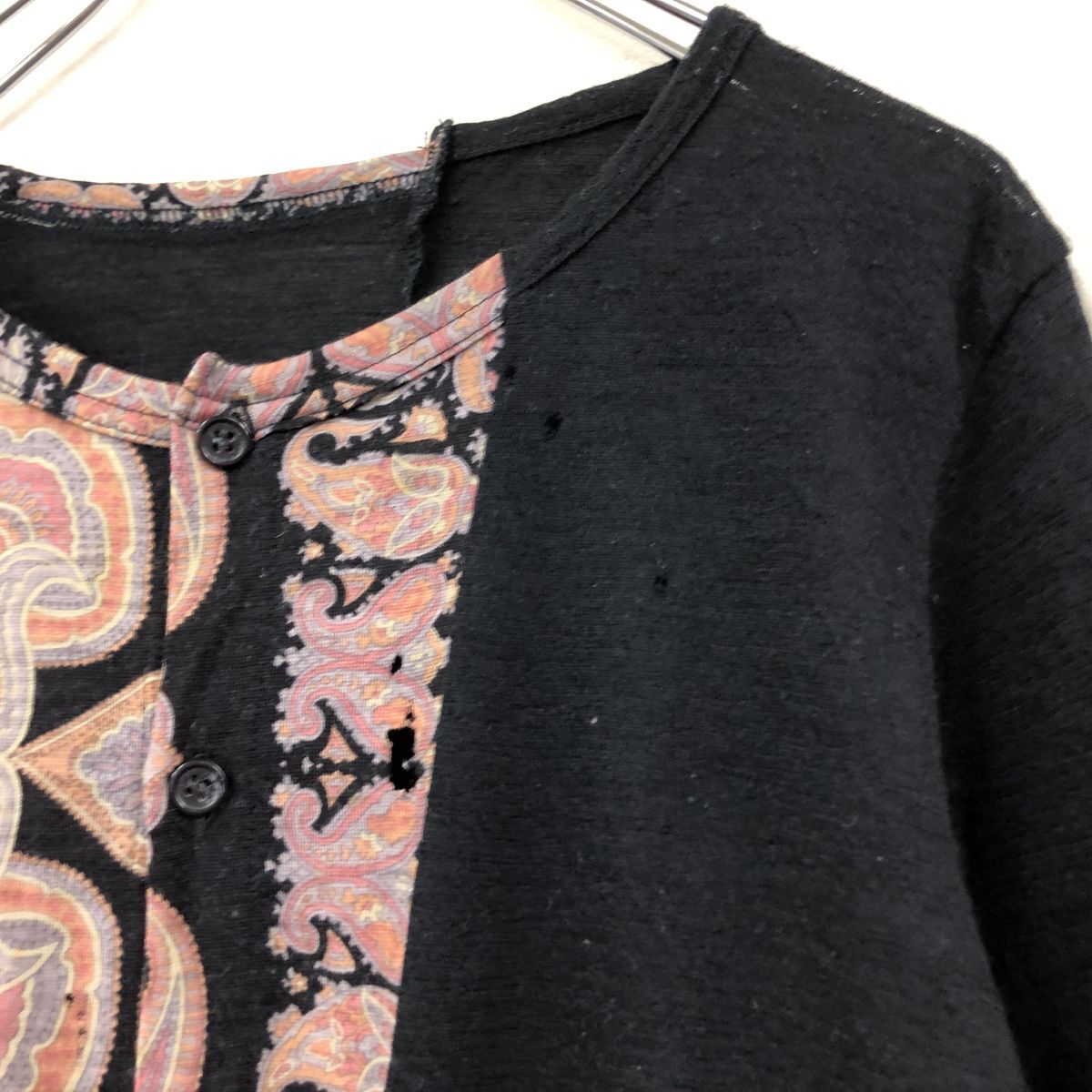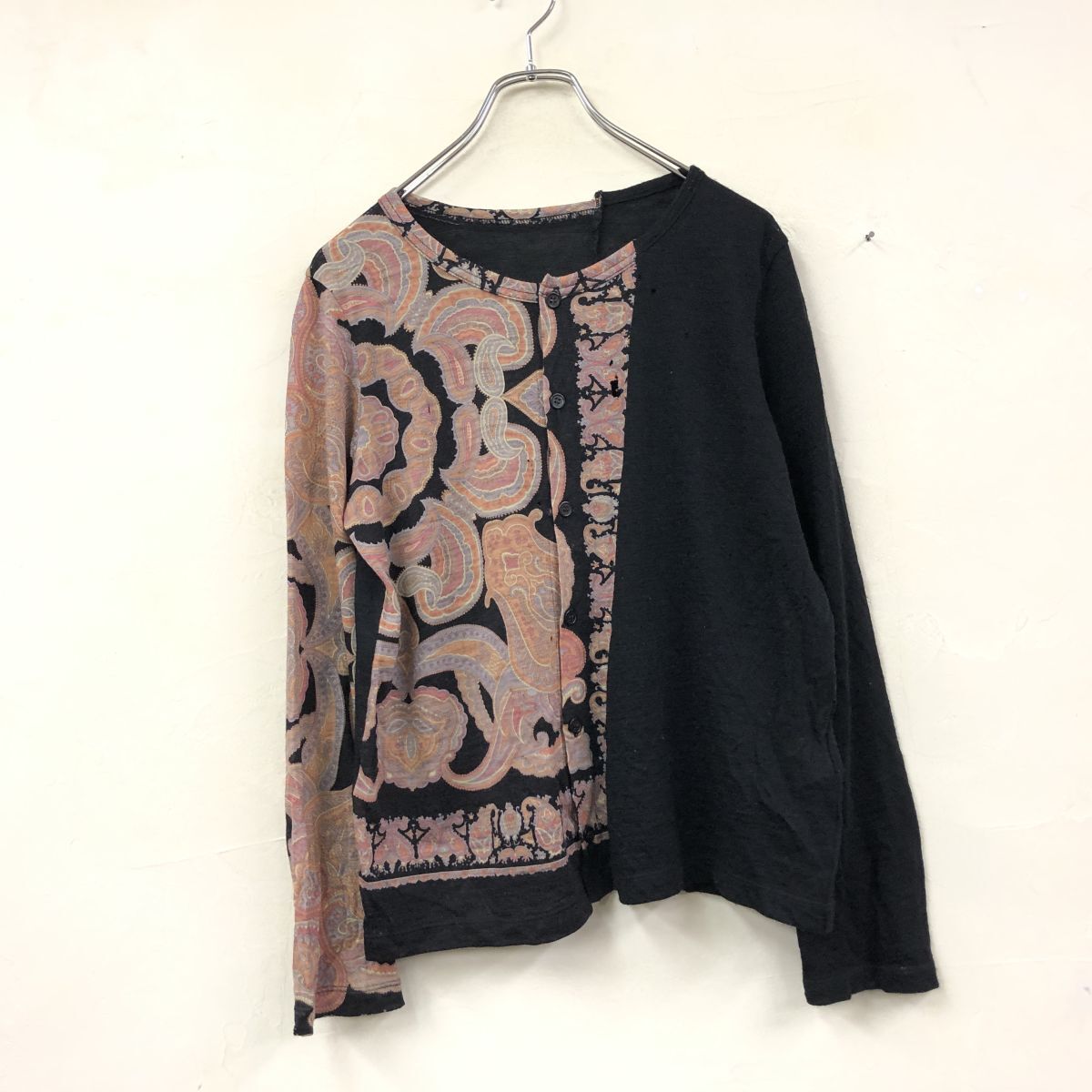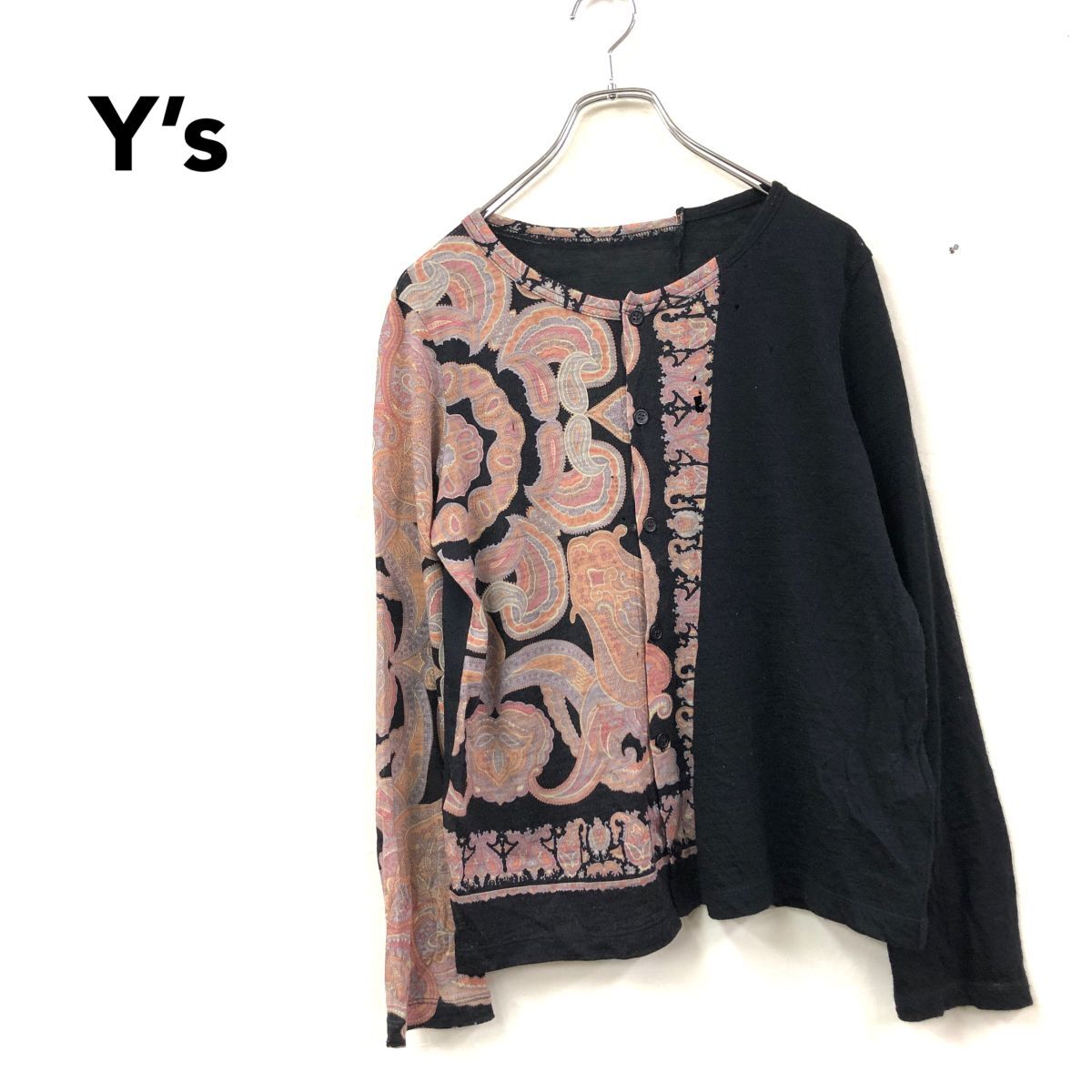 2N2732-D◆ Y's ワイズ ヨウジヤマモト ニットカーディガン 切り替え レディース ◆ size2 ブラック ペイズリー 総柄 ウール