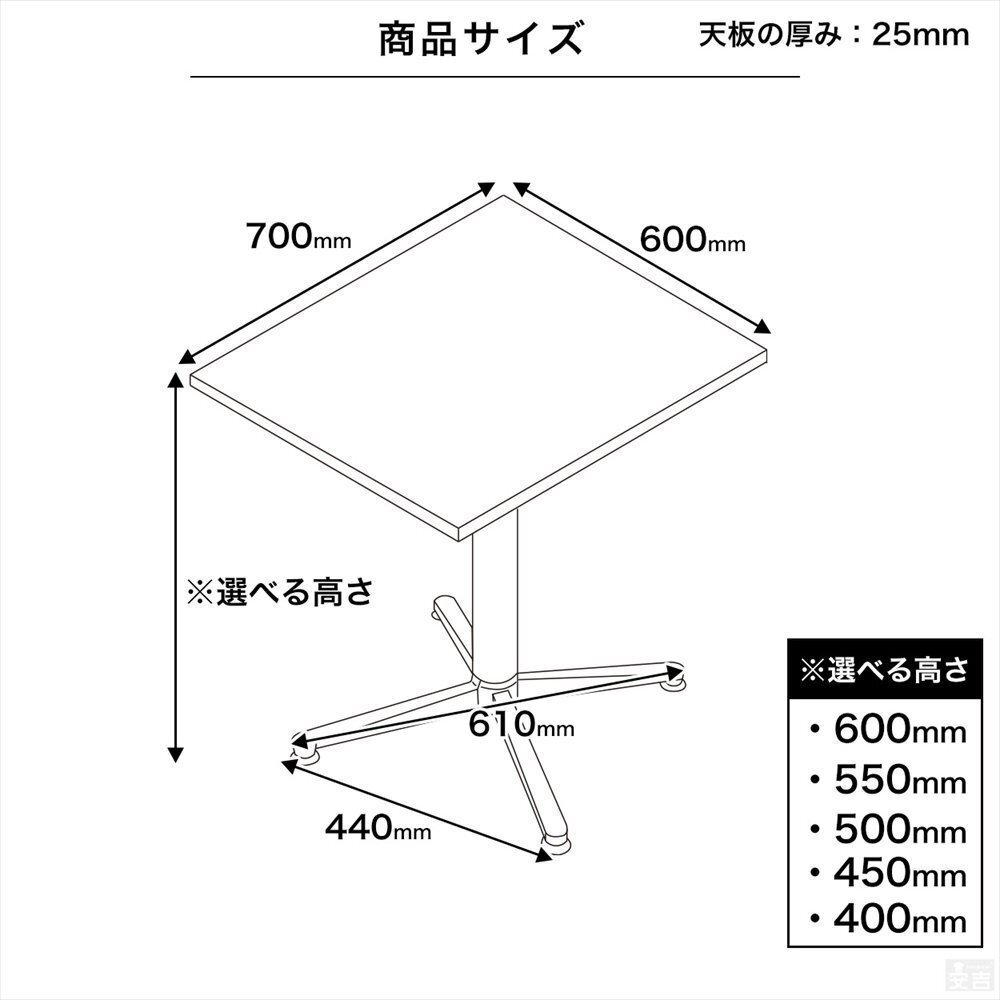 | 材質 | 【天板】積層合板/表面・裏面メラミン樹脂化粧繊維板 【脚部】スチール(粉体塗装) |