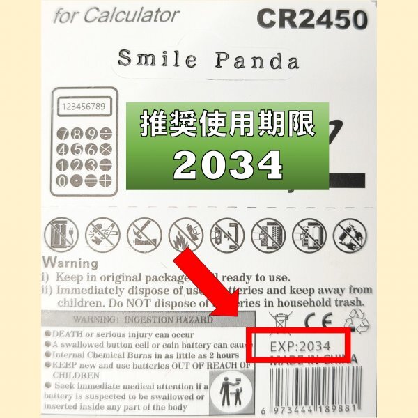 CR2450 リチウムボタン電池 5個 使用推奨期限 2034年