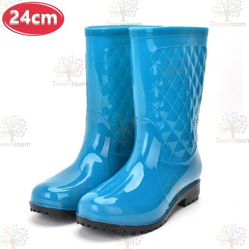 お洒落 キルティング レインブーツ 【ブルー 24cm】 長靴 レディース 女の子 梅雨 K-310