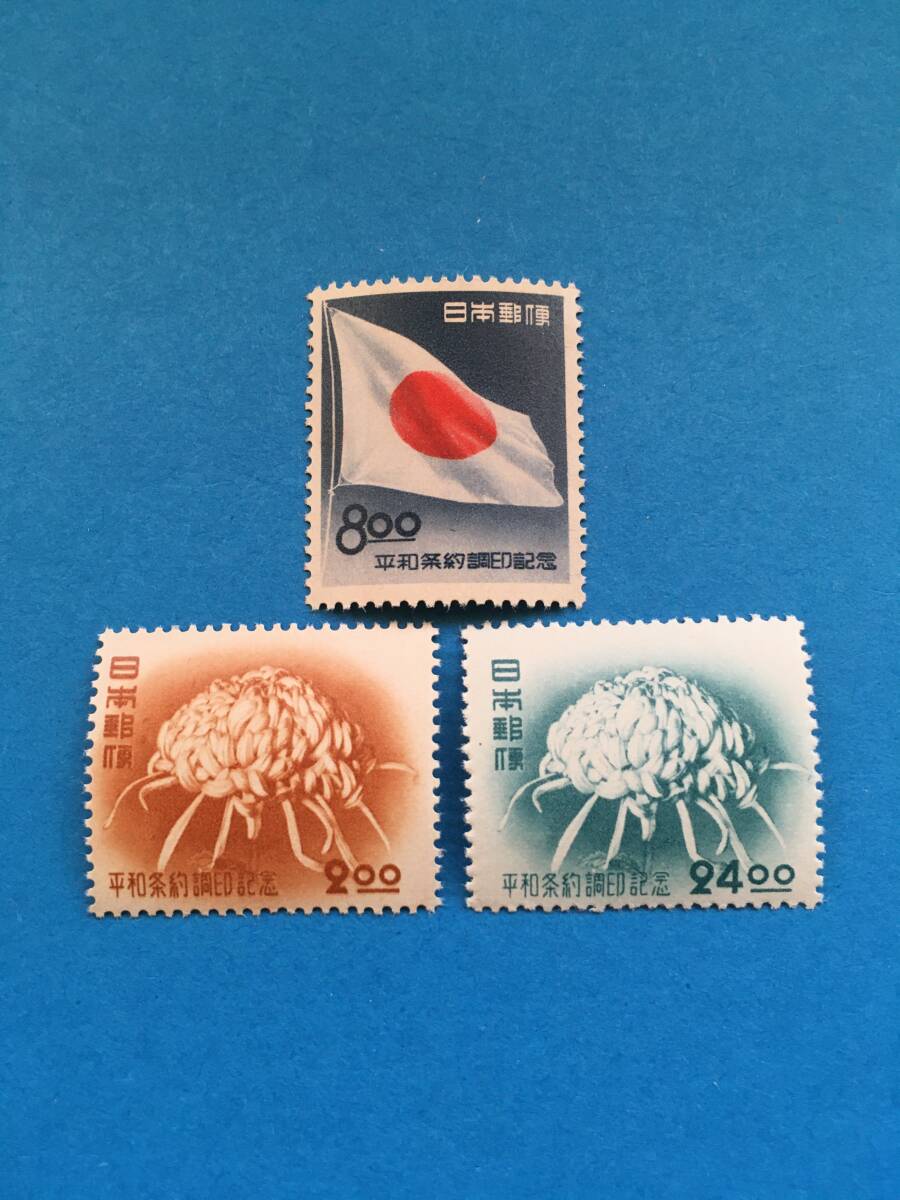 C348 古切手 記念切手 1951年発行 平和条約調印記念 2.00円 8.00円 24.00円 3種完
