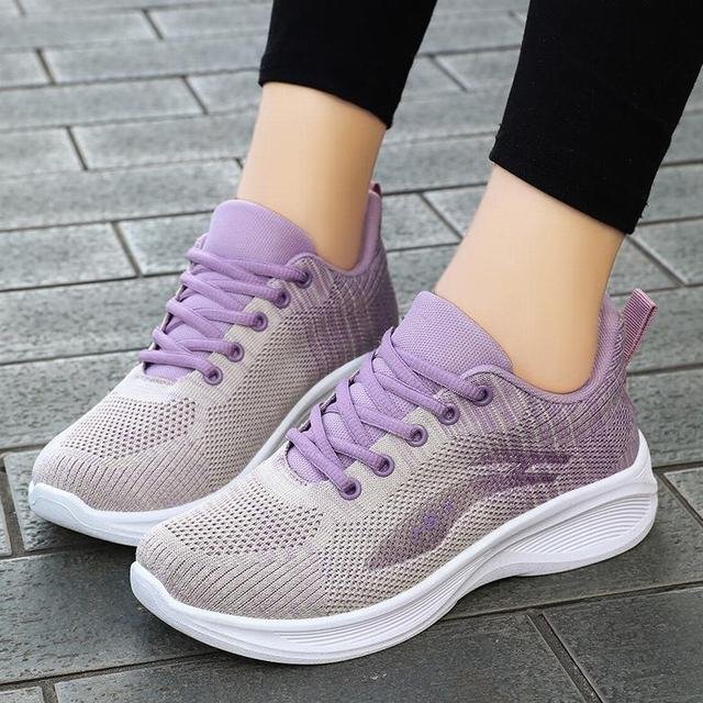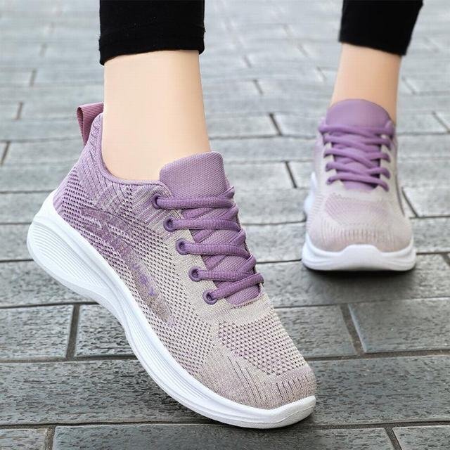 ★スニーカー レディース メッシュ レディース靴 スポーツ アウトドア 春秋 軽量 散歩シューズ 通気性 通勤 婦人靴 紫25cm
