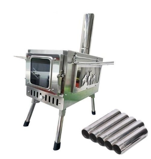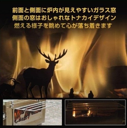 薪 ストーブ アウトドア 調理器具 暖炉 キャンプ 折りたたみ 煙突付き 耐熱ガラス窓付き 棚付き 組立式 屋外 焚き火台 BBQ 暖房 ステンレス