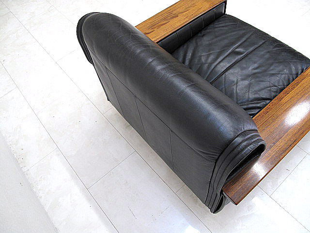 無垢材のアームと脚部は、木目の表情を生かしながら丹念に磨き上げられ、温かみと重厚感を併せ持つ佇まいを形成。リビング空間に上質な存在感を与えます。