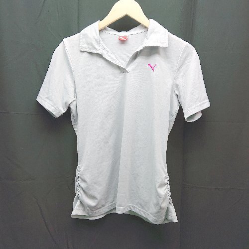 ◇ PUMA スポーツ スポーティー ブランドロゴ カジュアル シンプル 半袖 ポロシャツ サイズL ブルー系 レディース E