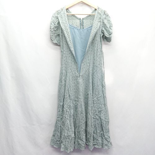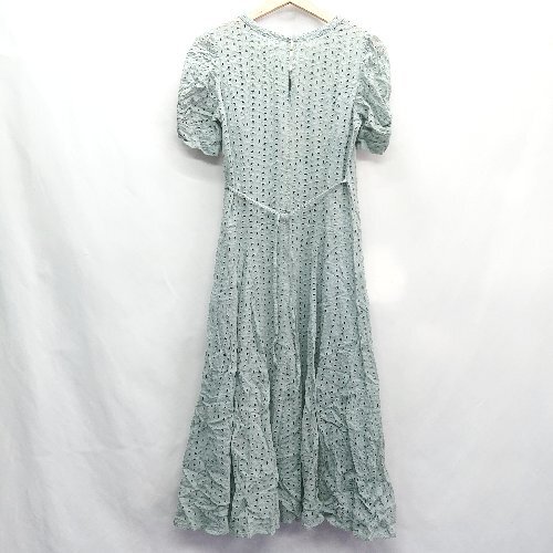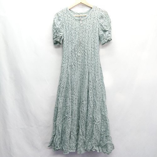 ◇ ⊂ LILLIAN CARAT リリアンカラット レース インナーあり 半袖 ロング丈 ワンピース サイズM グリーン系 レディース E