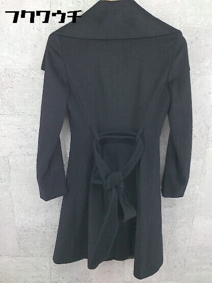■ ◎ LE SOUK ルスーク ベルト付 アンゴラ混 長袖 ロング コート サイズ36 ブラック レディース