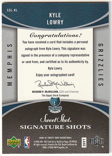 2006-07 UD SWEET SHOT SIGNATURE SHOTS Kyle Lowry RC Auto