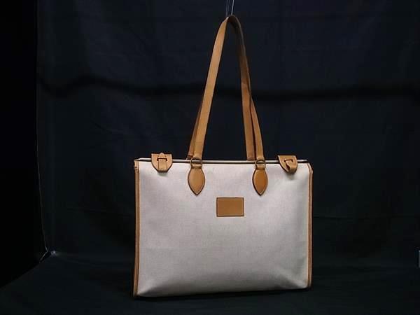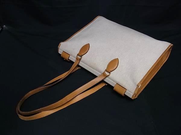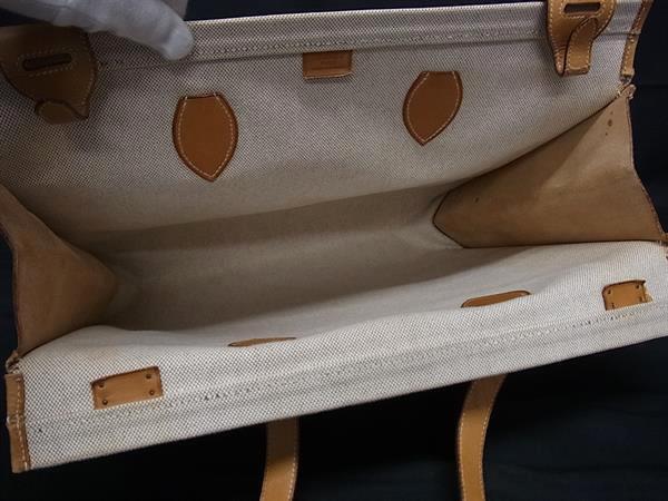1円 HERMES エルメス カバ40 トワルアッシュ×レザー ゴールド金具 トート ハンドバッグ ショルダーバッグ T刻印 ベージュ系 BS1498