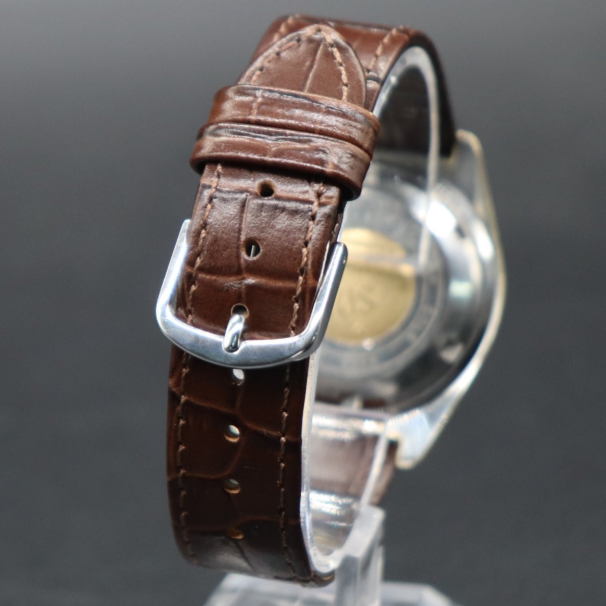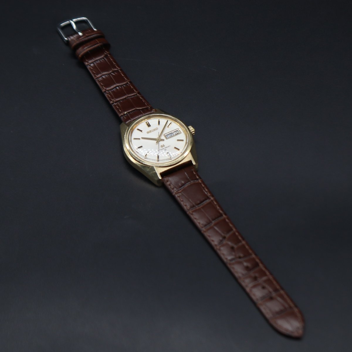 令和7年11月、当店専属の時計修理店(一級時計修理技能士)にてOH済ですので、 次回メンテナンス時期まで安心してお使い頂けるかと思います。 OH後、平置きで24時間動作確認済み、±30秒以内で遅れなく稼働中です。 この機会に是非、お手元でご愛用頂ければと思います。 リューズを一段引きで日付早送り、二段引きで時刻調整が可能です。 曜日の早送り機能はございません。 ※カレンダー早送り機能は、商品同封の使用上の注意を必ず守り、 丁寧に、やさしく操作していただくようお願いいたします。 国産腕時計初の自動巻き10振動(ハイビート)、61系の初期モデルです。 初期型は、文字盤にHI-BEAT 36000の記載がなく、6時位置に GRAND SEIKOの表記があり、製造期間も短く、希少性の高いモデルです。 ケースに経年のキズ・小打痕、風防に目視では目立たない 極薄い小キズございますが、視認性問題なくきれいな状態です。 文字盤に若干の小汚れやフチに小傷み、針は小汚れ程度で、 インデックス・植字SEIKO・GSロゴは目視できれいです。 プリントロゴや印字、消えなく鮮明です。 経年を考えると、とてもきれいなダイアルかと思います。 純正リューズ、GSマーク良好です。 GSメダリオン、良い状態です。 周囲の刻印、鮮明です。 ベルトは、新品の国内メーカー製革ベルトに交換済みです。 古いお品物ですので、詳しくは画像にてご判断願います。 |