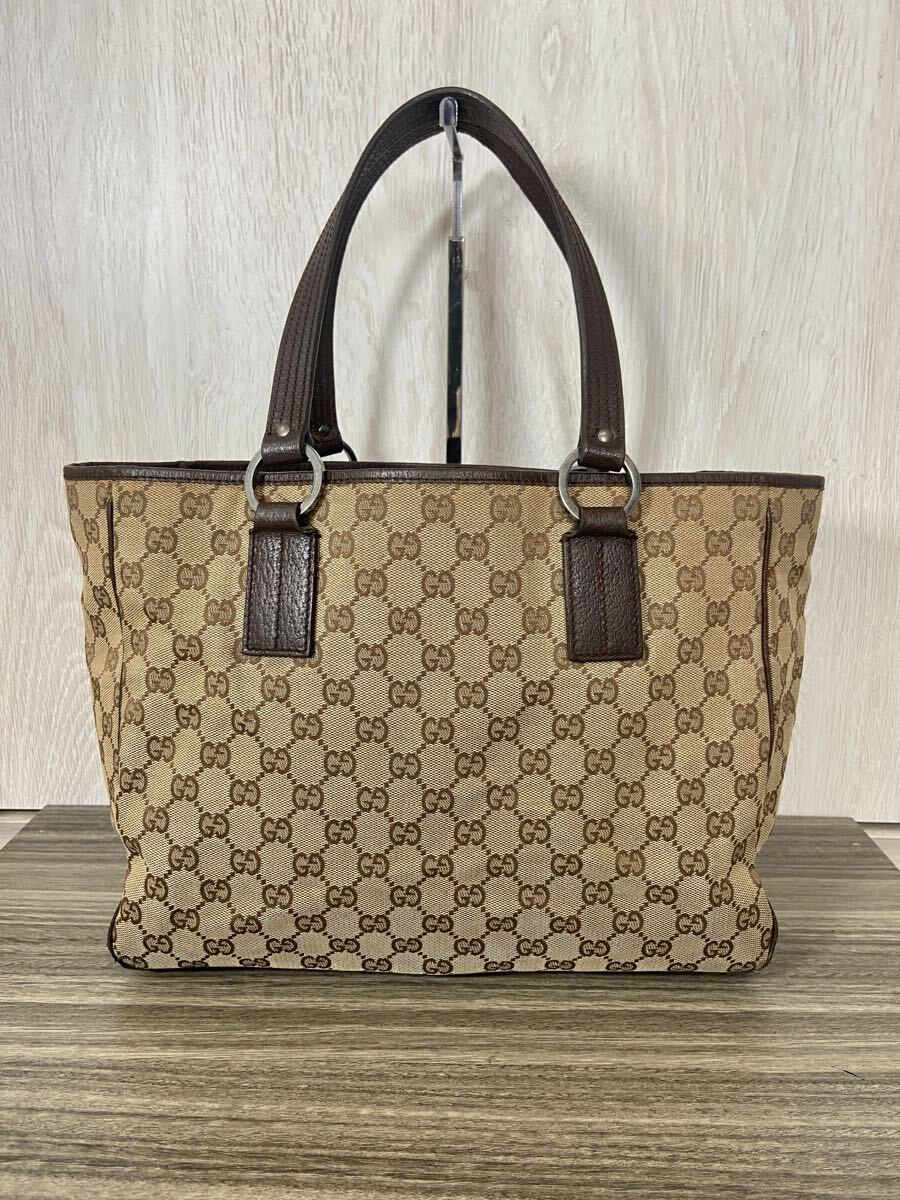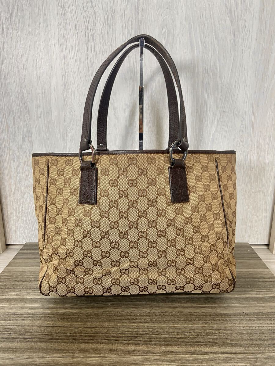 GUCCI トートバッグ GG柄 キャンバス レザー ベージュ 手持ち